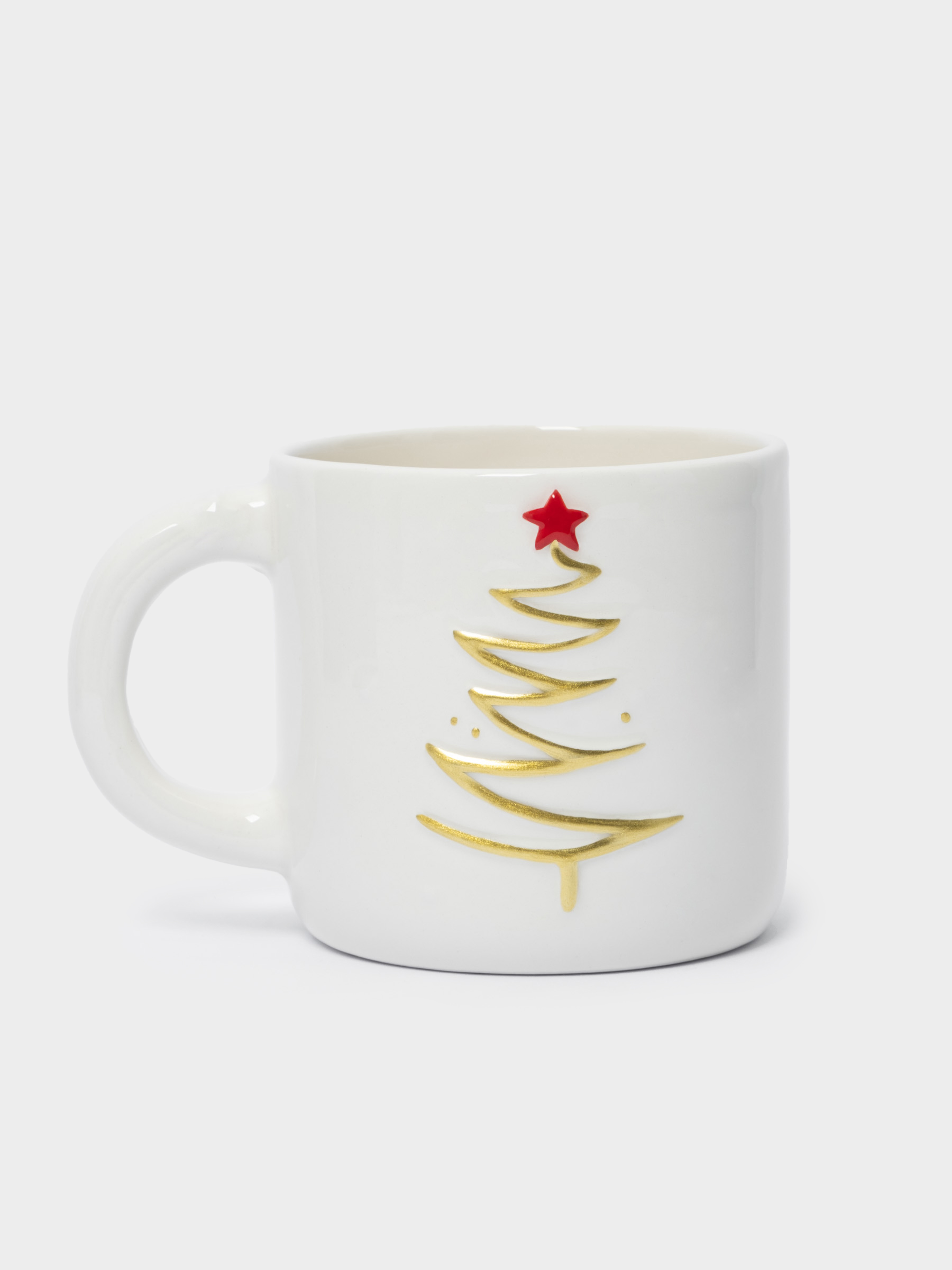 Кружка, 340 мл, керамика D, молочно-золотистая, Ель со звездой, New year