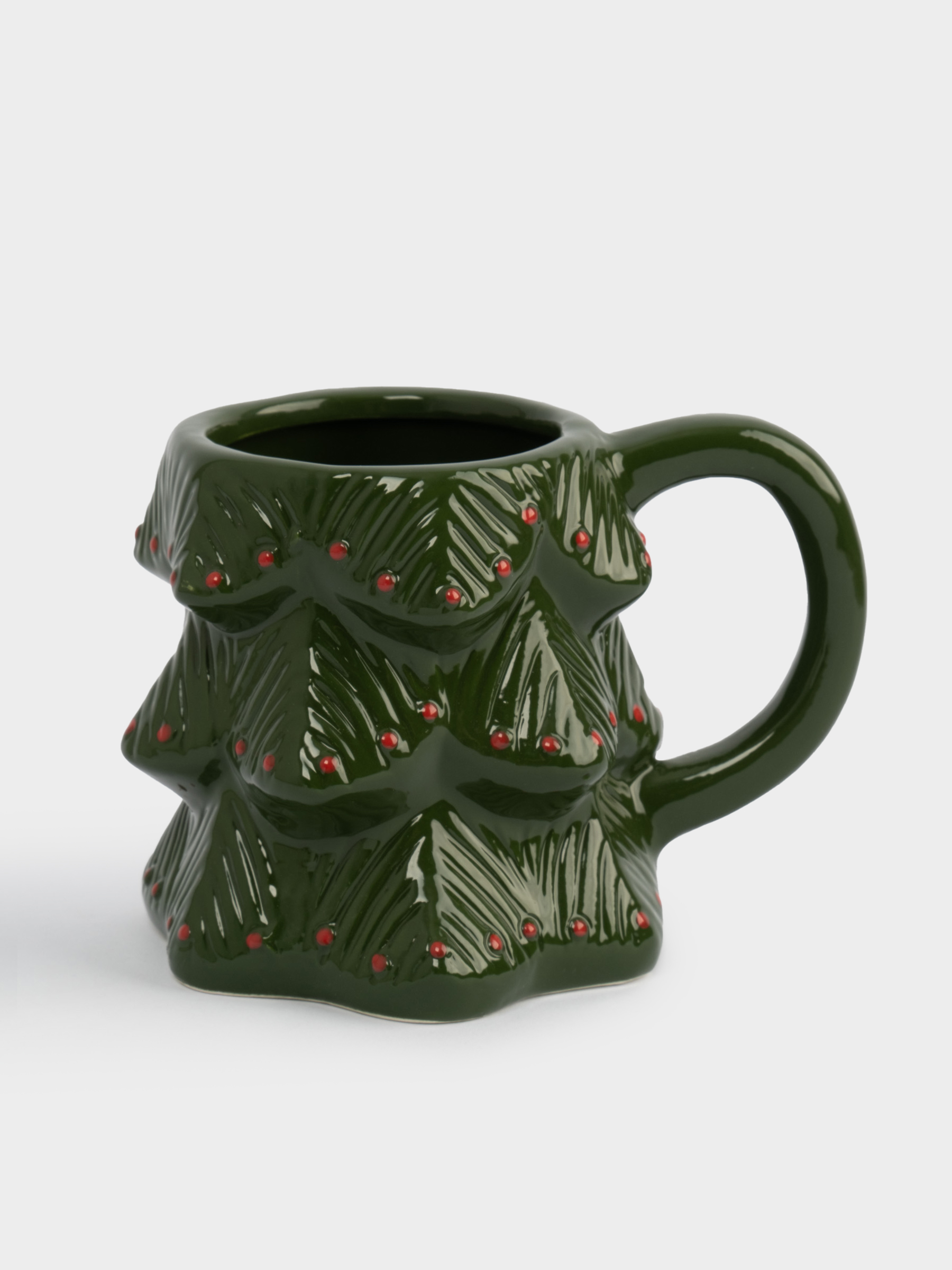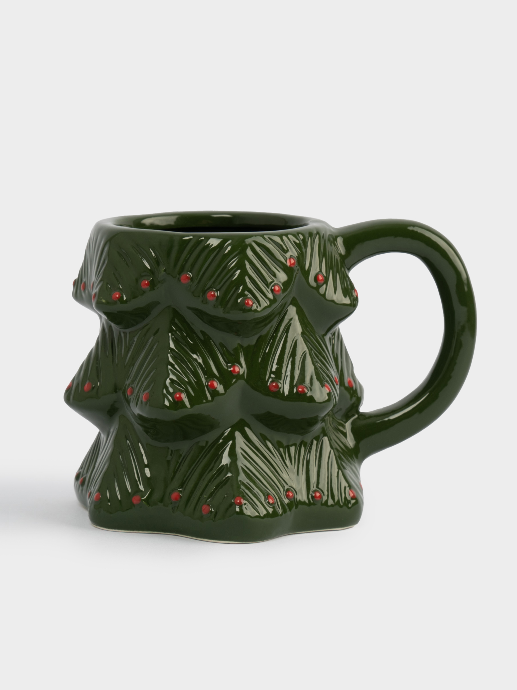 Кружка, 380 мл, керамика, зелено-красная, Елка, Fir