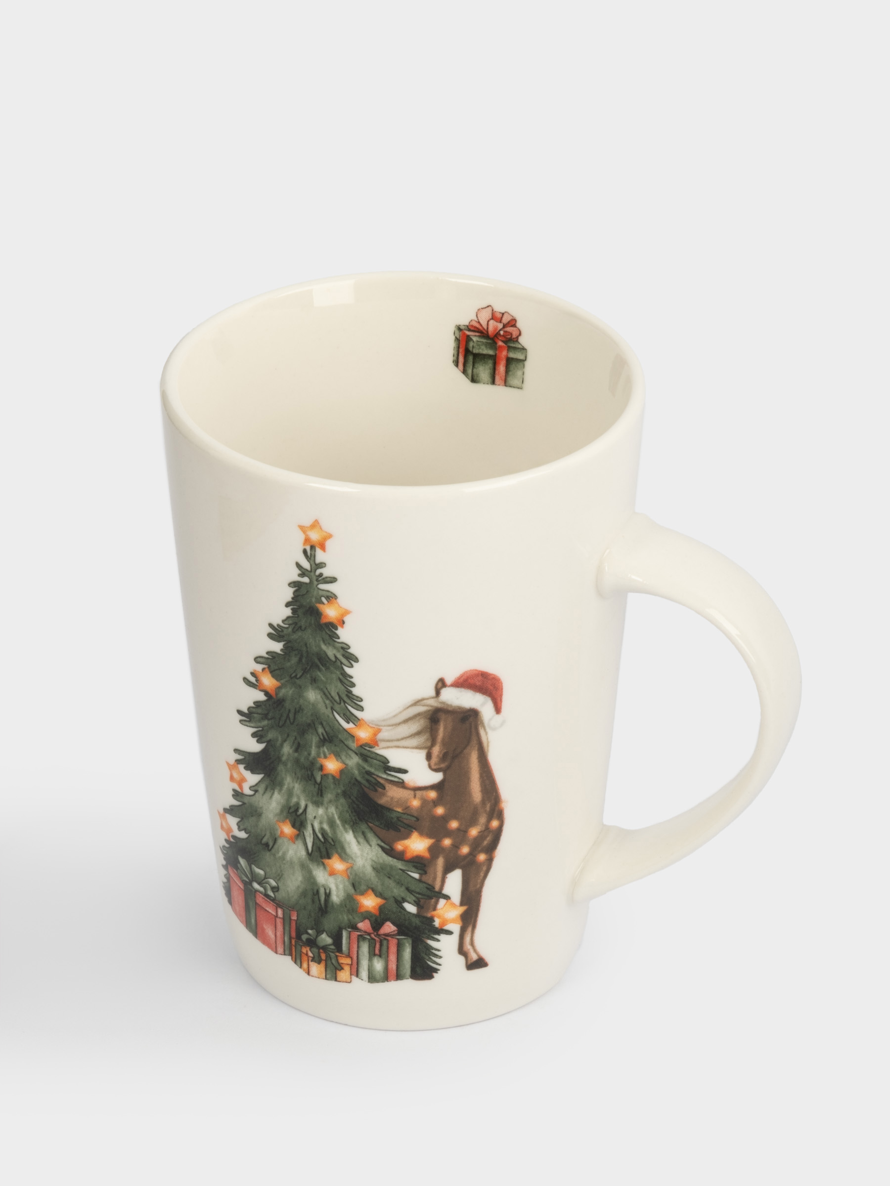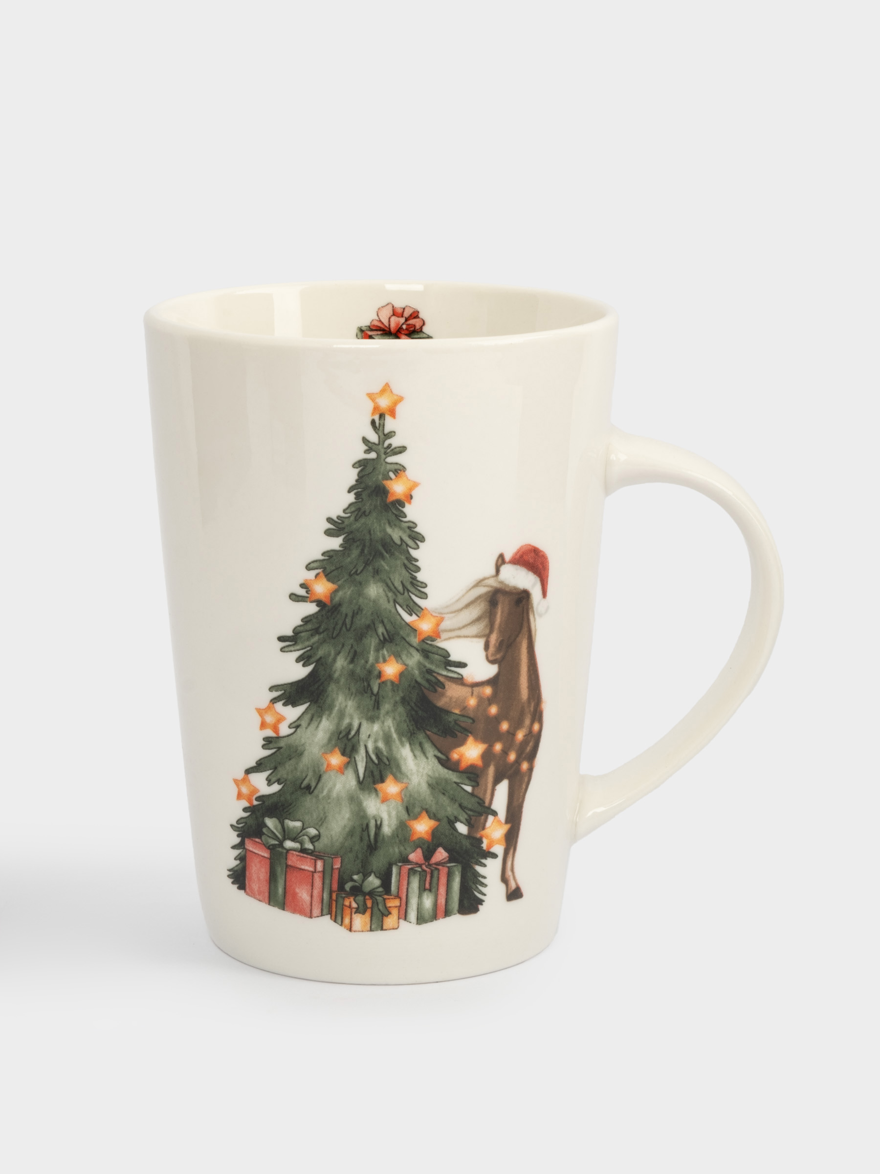 Кружка, 420 мл, фарфор N, белая, Лошадь у елки, Bright horse