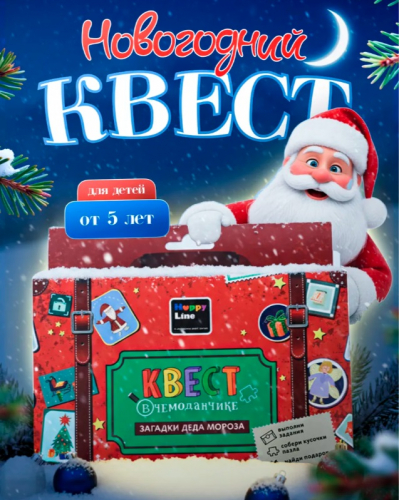 Мы предлагаем новогодний квест в чемоданчике «Зимние забавы». Ребёнку предстоит прочитать послание из морозных узоров на стекле, разгадать загадку про елку, узнать рецепт ароматного шоколада, воспользоваться шифром и многое другое.
