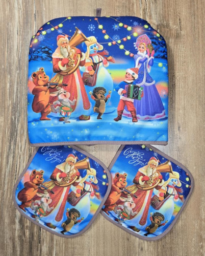 В наличии!!! Комплект "Новогодний" грелка на чайник + 2 прихватки.