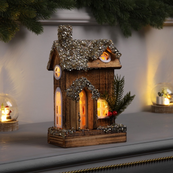 Фигура деревянная «Изба», 24×15×7 см, 3 LED, батарейки AAx2 (не в комплекте), свечение теплое белое