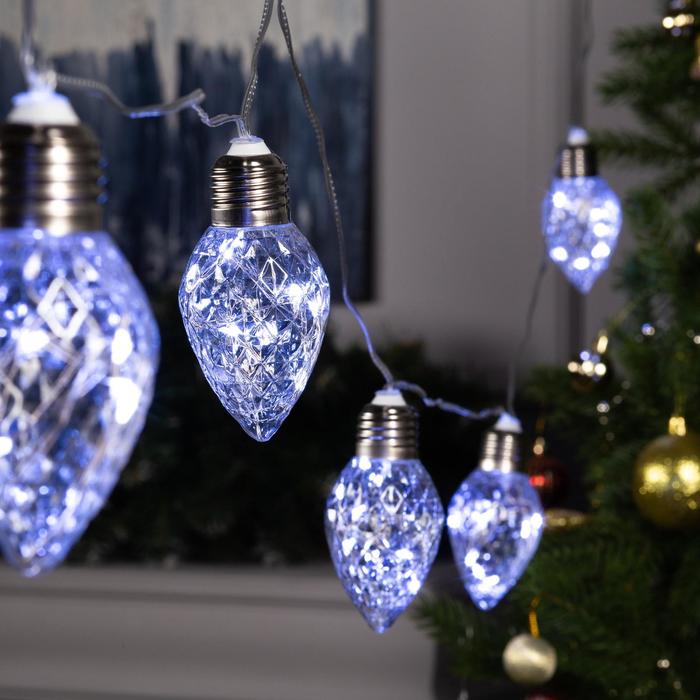 Гирлянда «Нить» 3 м с насадками «Лампочки шишки», IP20, прозрачная нить, 80 LED, свечение белое, 8 режимов, 220 В