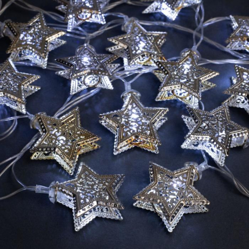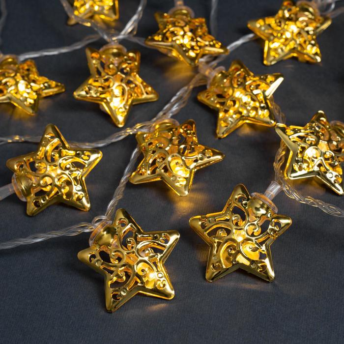 Гирлянда «Нить» 4 м с насадками «Звезда», IP20, прозрачная нить, 20 LED, свечение тёплое белое, 8 режимов, 220 В