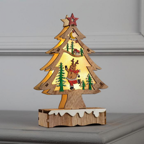 Светодиодная фигура «Дед Мороз и олень» 19×30×4.5 см, дерево, батарейки АААх2 (не в комплекте), свечение тёплое белое