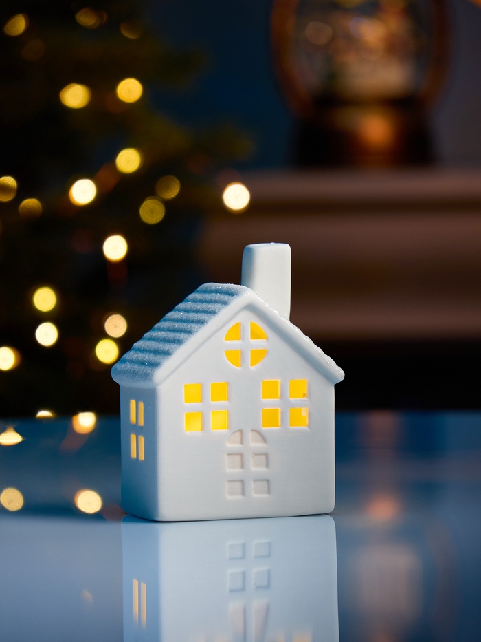 Светодиодная фигура «Домик с круглым окном» 7.7×5.7×10.2 см, 1 LED, керамика, от батареек LR44×2, свечение тёплое белое