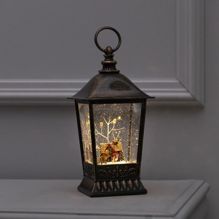 Светодиодная фигура «Фонарь с домиком» 12×24×12 см, пластик, батарейки ААх3 (не в комплекте), USB, свечение тёплое белое