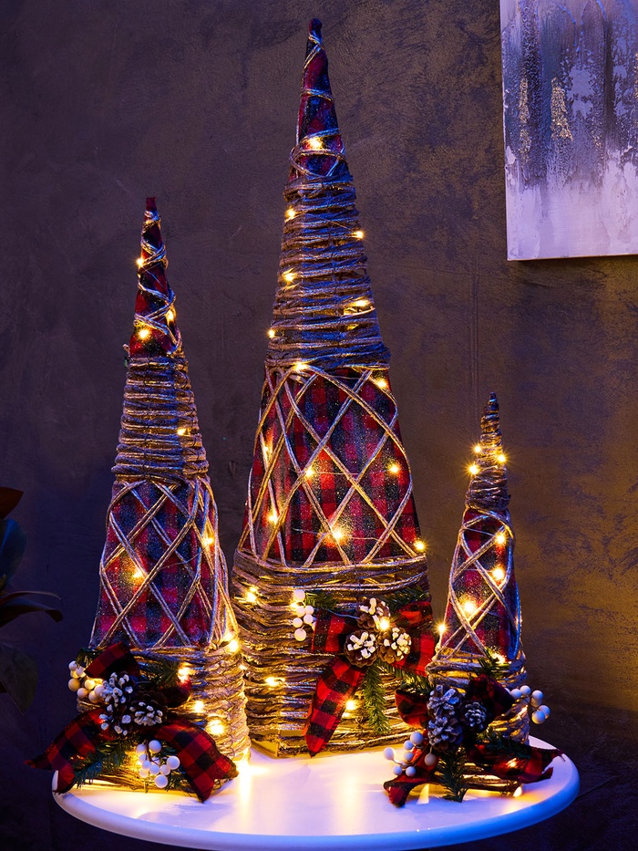 Светодиодная фигура «Конусы с еловой веткой» 40, 60, 80 см, текстиль, металл, батарейки ААх2 (не в комплекте), свечение тёплое белое