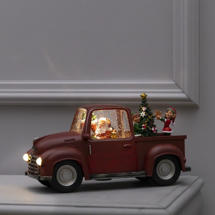 Светодиодная фигура «Машина с эльфами» 28×17×12 см, пластик, батарейки ААх3 (не в комплекте), USB, свечение тёплое белое