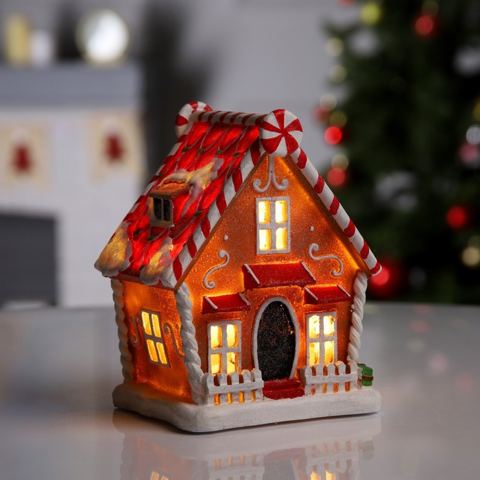 Светодиодная фигура «Пряничный домик» 18×12×10 см, полистоун, от батареек АААх3, свечение тёплое белое