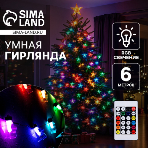 Умная гирлянда «Нить» 5 м роса, IP20, серебристая нить, 50 LED, управление с приложения, свечение RGB, USB
