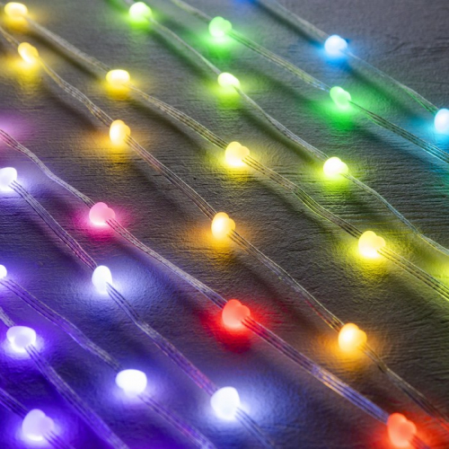 [Это тонкий невидимый провод с миниатюрными светодиодами лампочками, которые создают эффект мерцающих капель росы. Лампочки расположены на гибкой проволоке, что позволяет свободно формировать различные формы и украшать ими любые поверхности: окна, мебель, растения, элементы декора. Серия DECOR. Тонкая проволока с лаковой изоляцией. Микродиод в эпоксидной смоле122][IP 20. Устройство защищено от твердых объектов диаметром больше 12,5 мм и не защищено от проникновения воды.122][цвет свечения: мульти, белый, тёплый белый, синий, фиолетовый, жёлтый, зеленый, красный. Цвет нити: серебристый, медный, зеленый, черный.122]