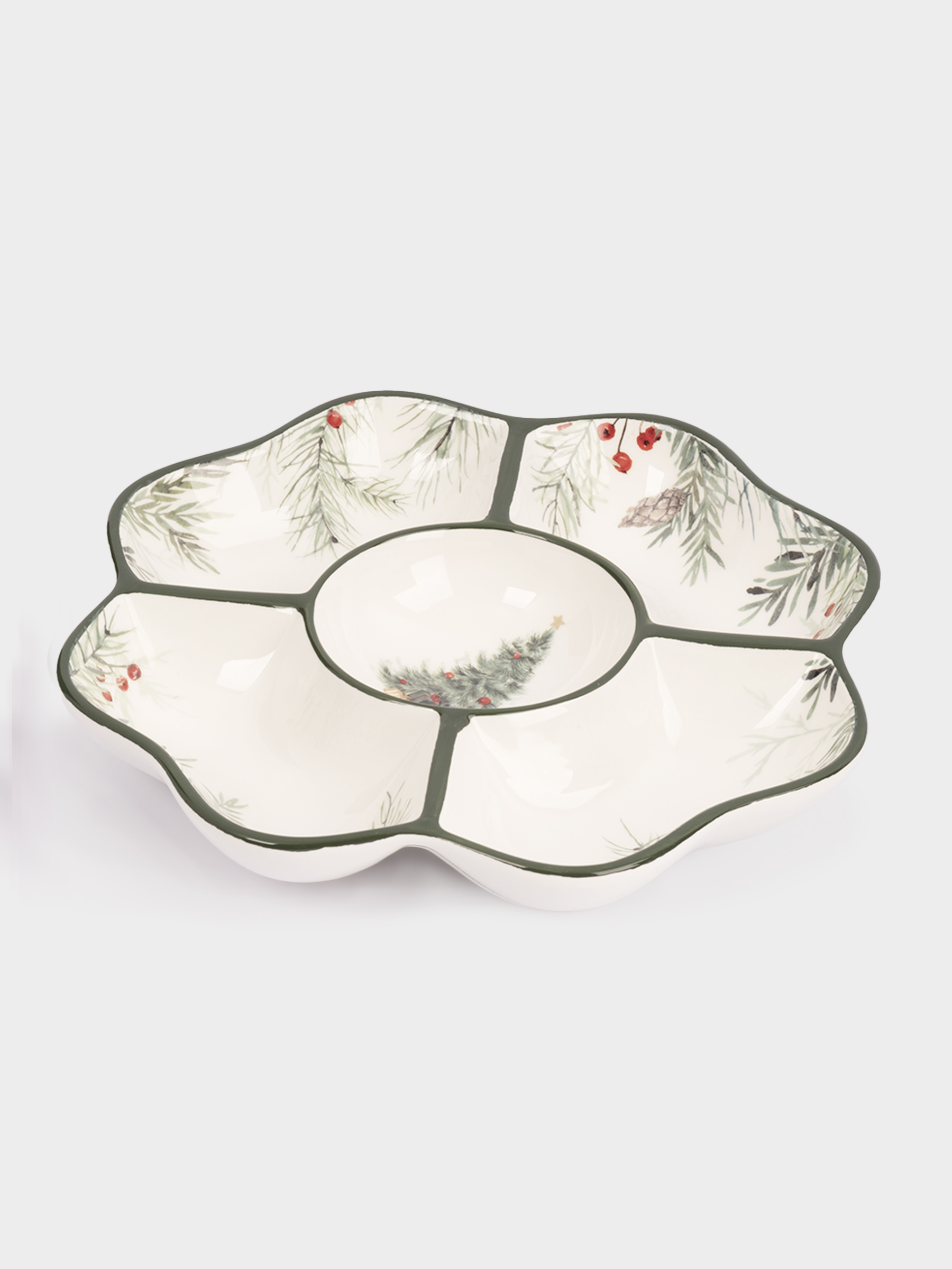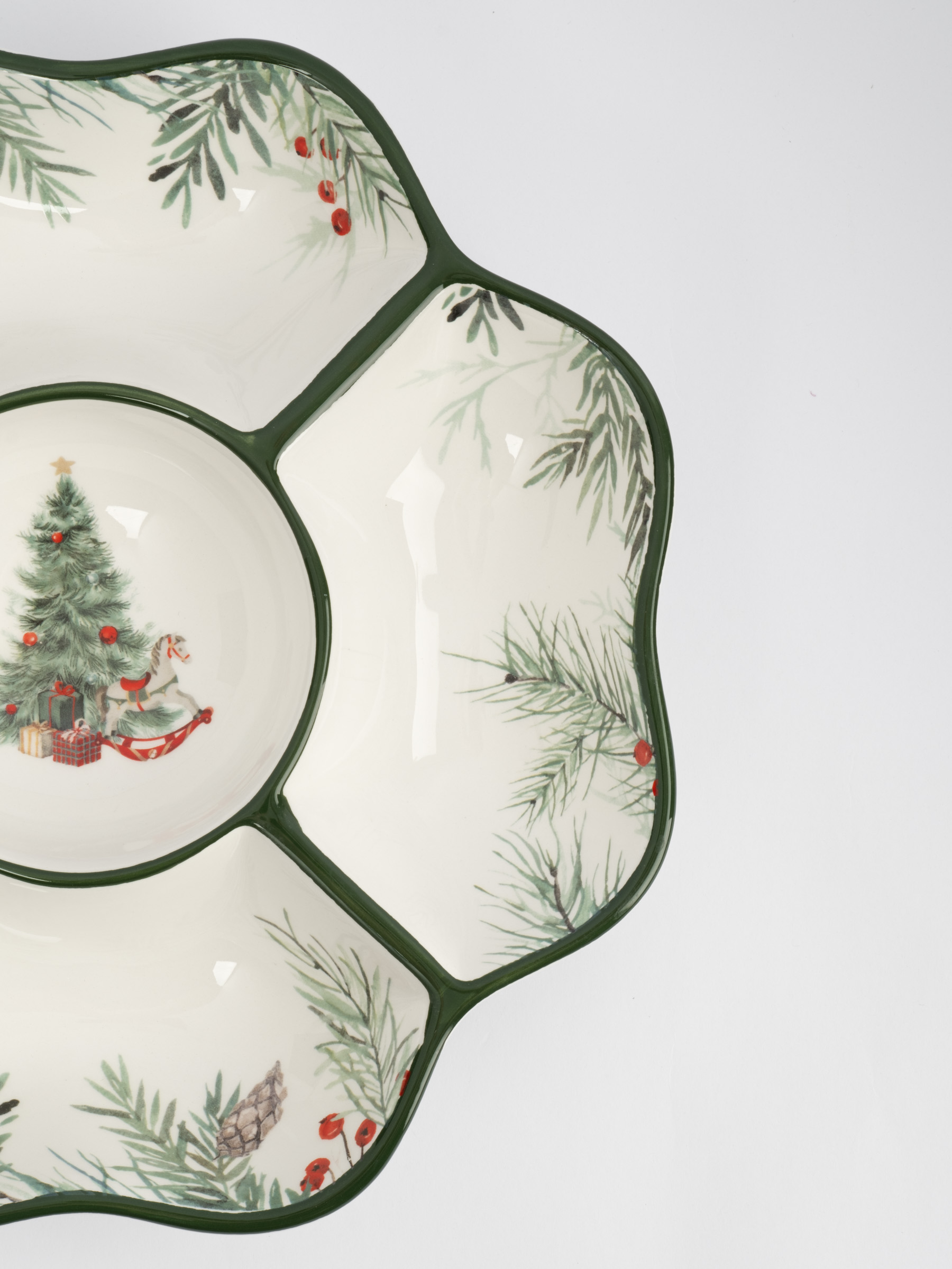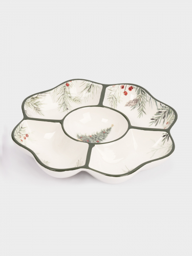 Менажница, 25 см, 5 отд, керамика D, зеленая, Лошадка у елки, Festival