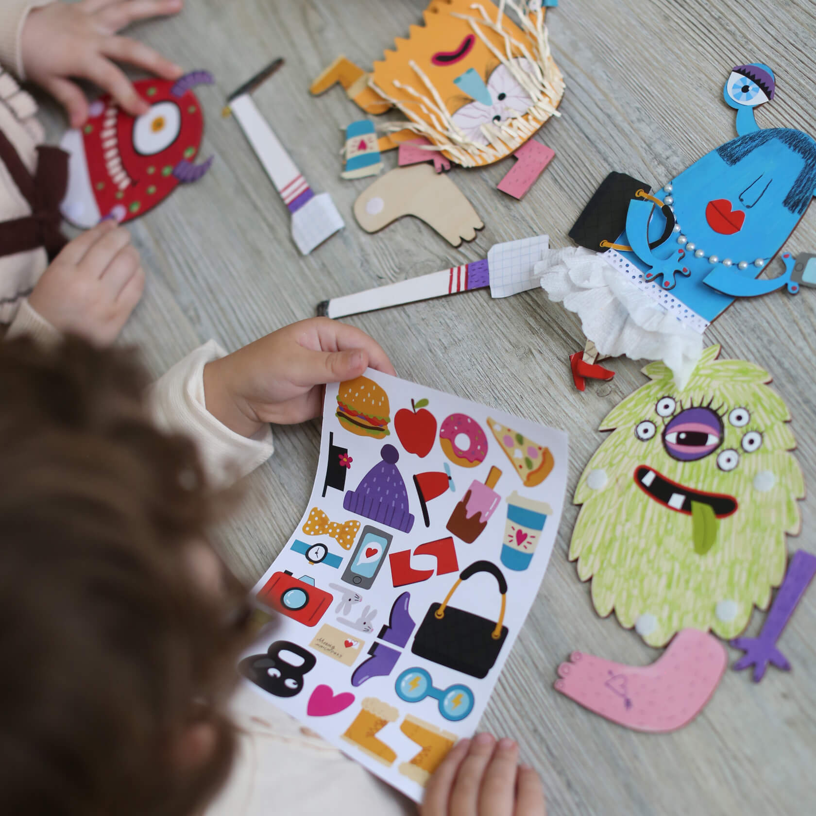 Уникальный детский набор для творчества "Креативные монстры"! Набор включает в себя 6 разных деревянных заготовок фигурок монстров, 16 пар рук и ног. Руки и ноги монстриков крепятся на липучки, которые входят в состав набора.