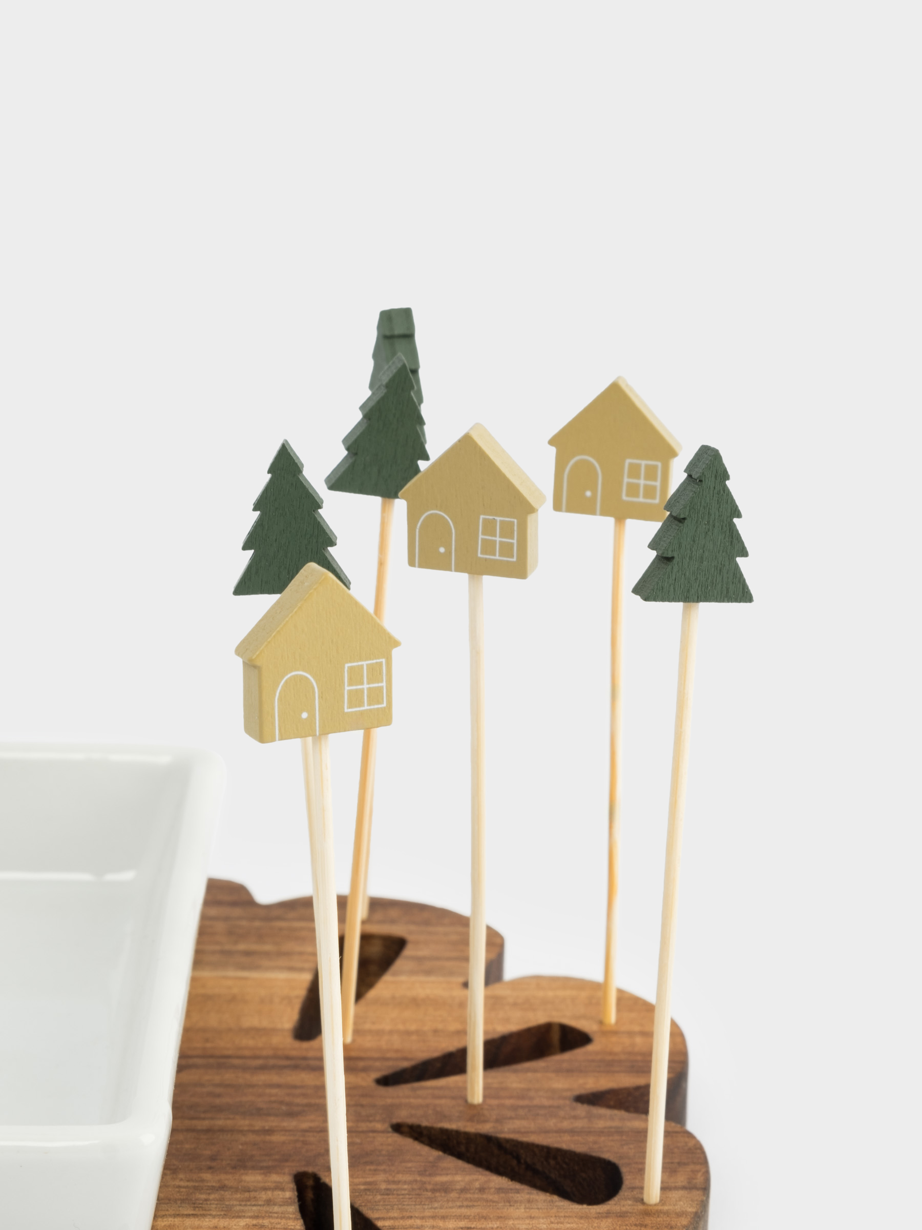Набор для закусок, 2 пр, на подставке, со шпажками, керамика/дерево, Подарок, New year
