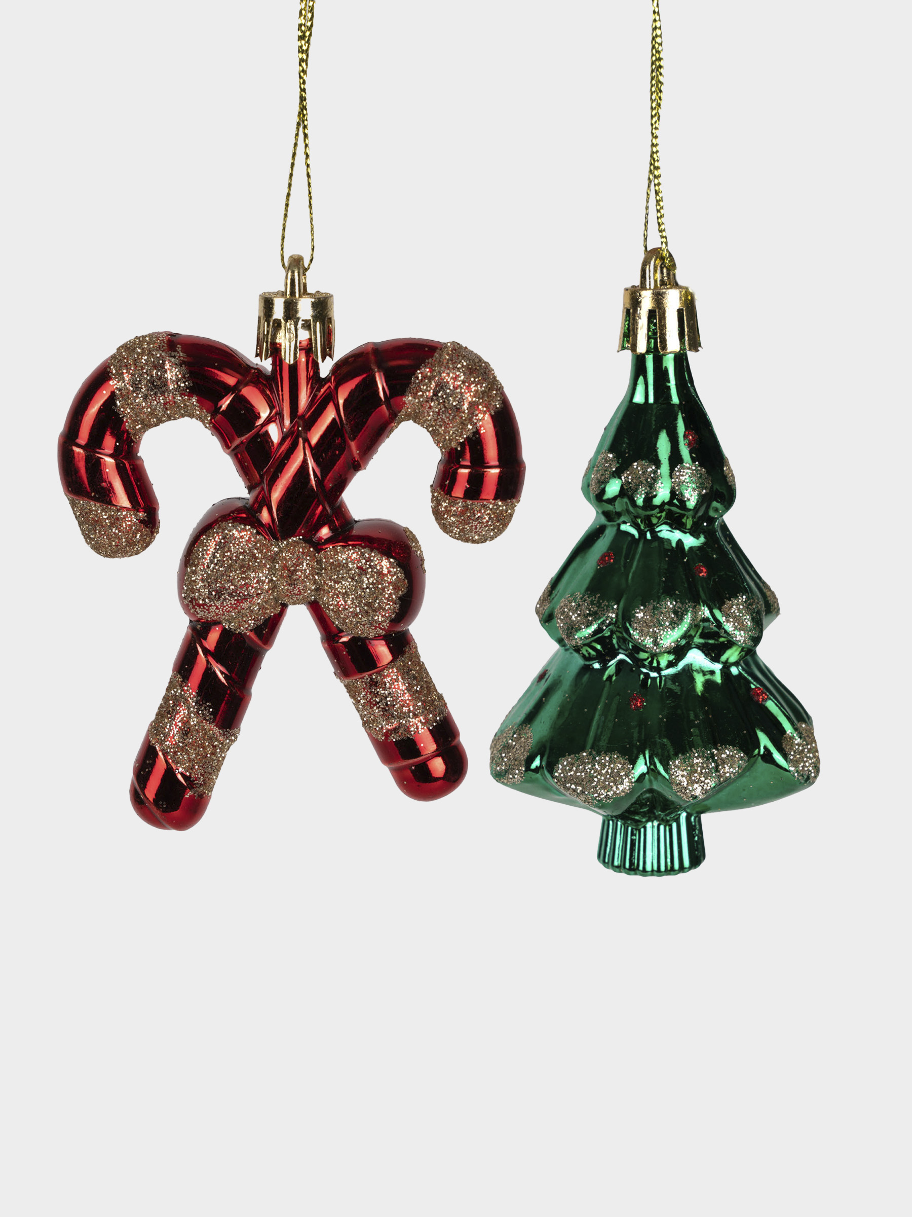 Набор елочных игрушек, 7 см, 2 шт, пластик, зеленый/красный, Елка и трость, New year