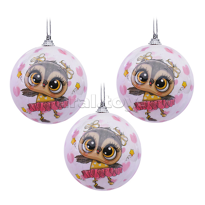 Набор елочных шаров S1807 "Совушки" (8см*3шт)