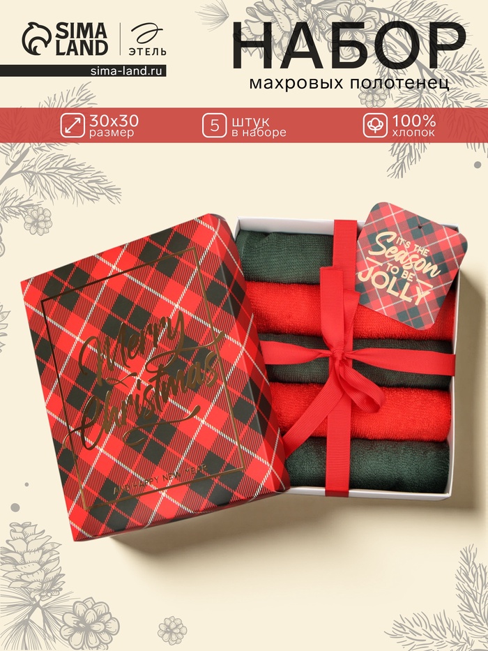 Набор махровых полотенец «Этель» Jolly, 30×30 см - 5 шт., хлопок 100%