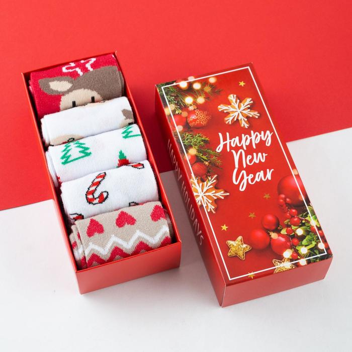 Носки женские новогодние KAFTAN Happy holidays размер 36-40 (23-25 см), набор 5 пар