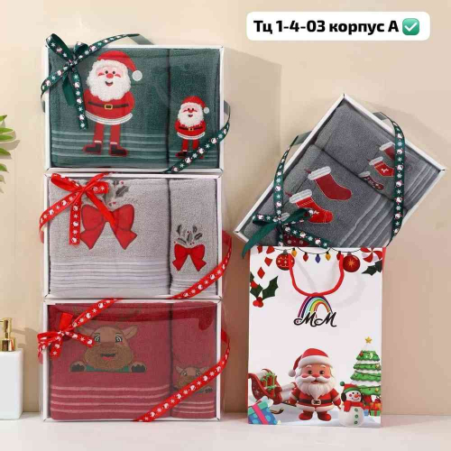 Набор подарочный новогодний 1шт полотенце новогоднее флис ( 25*50 ) 1шт полотенце вафельное ( 35*65 ) 1шт Календарь карманный без выбора