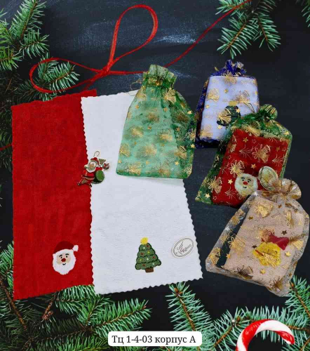 Набор подарочный новогодний Набор состоит из 3 предметов + мешочек. 2 шт полотенце новогоднее флис ( 25*50 ) 1 шт открытка без выбора