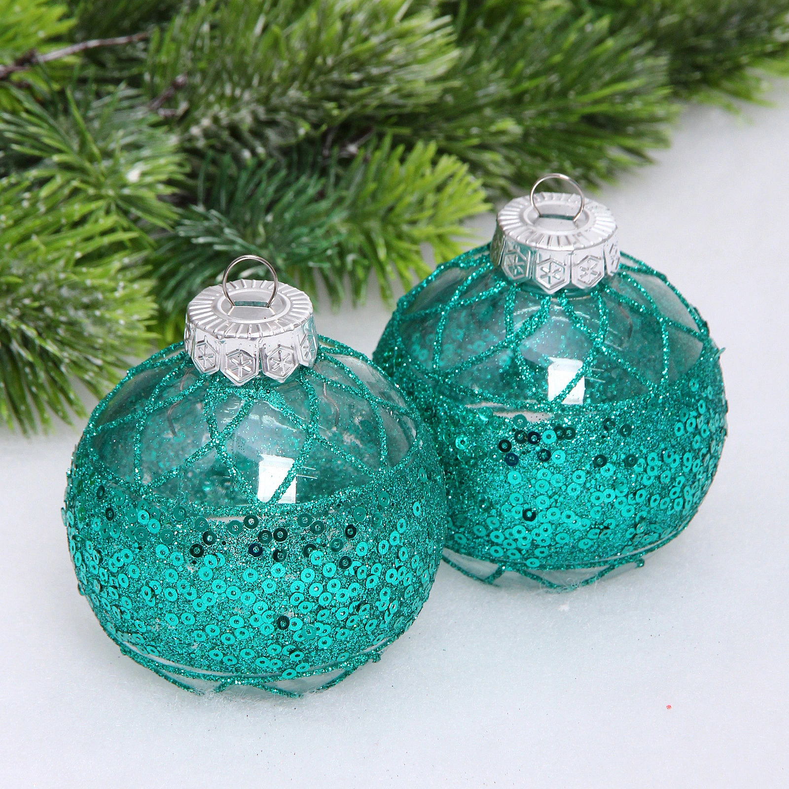 Набор шаров "Лазурная дымка " 8 см (в наборе 2 шт), Малахитовый зеленый