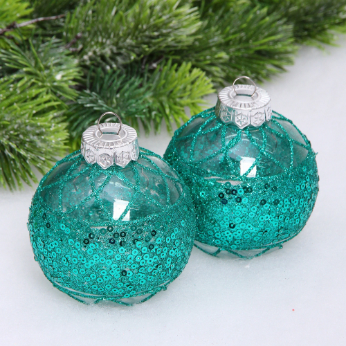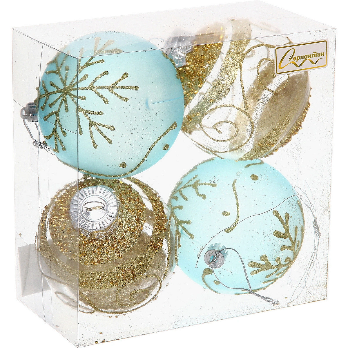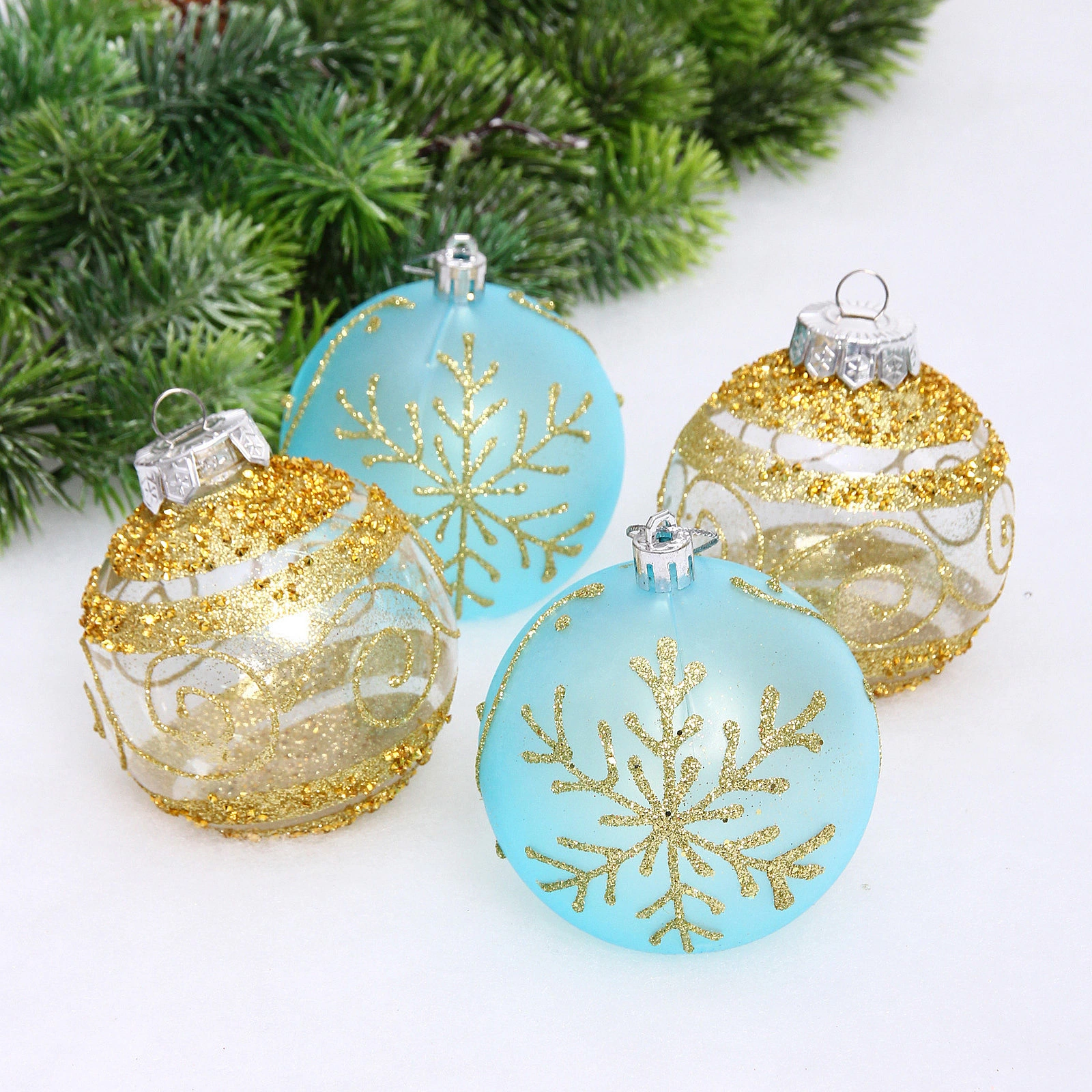 Набор шаров "Морозная вуаль" 8 см (в наборе 4 шт), Голубой, золото