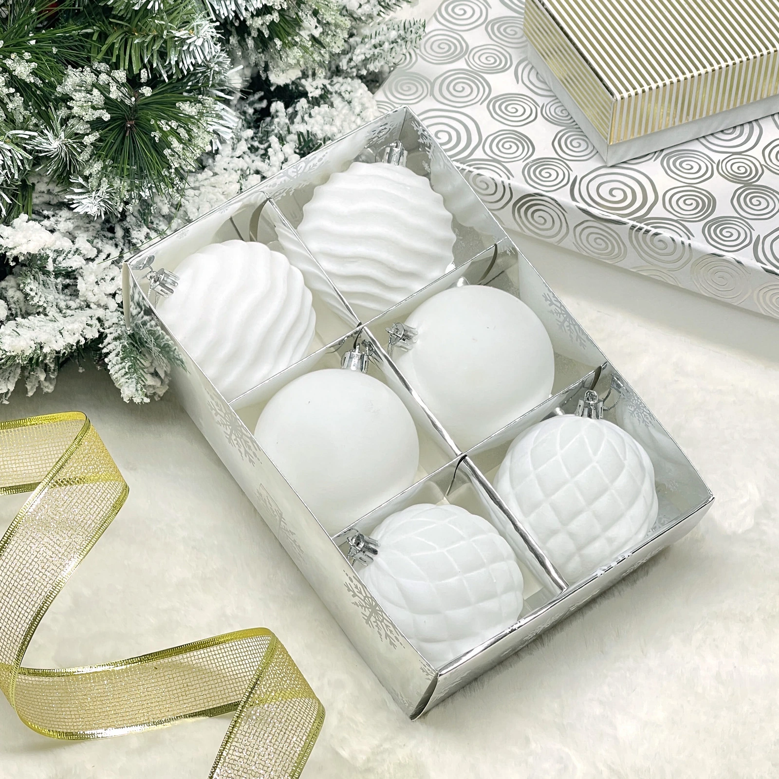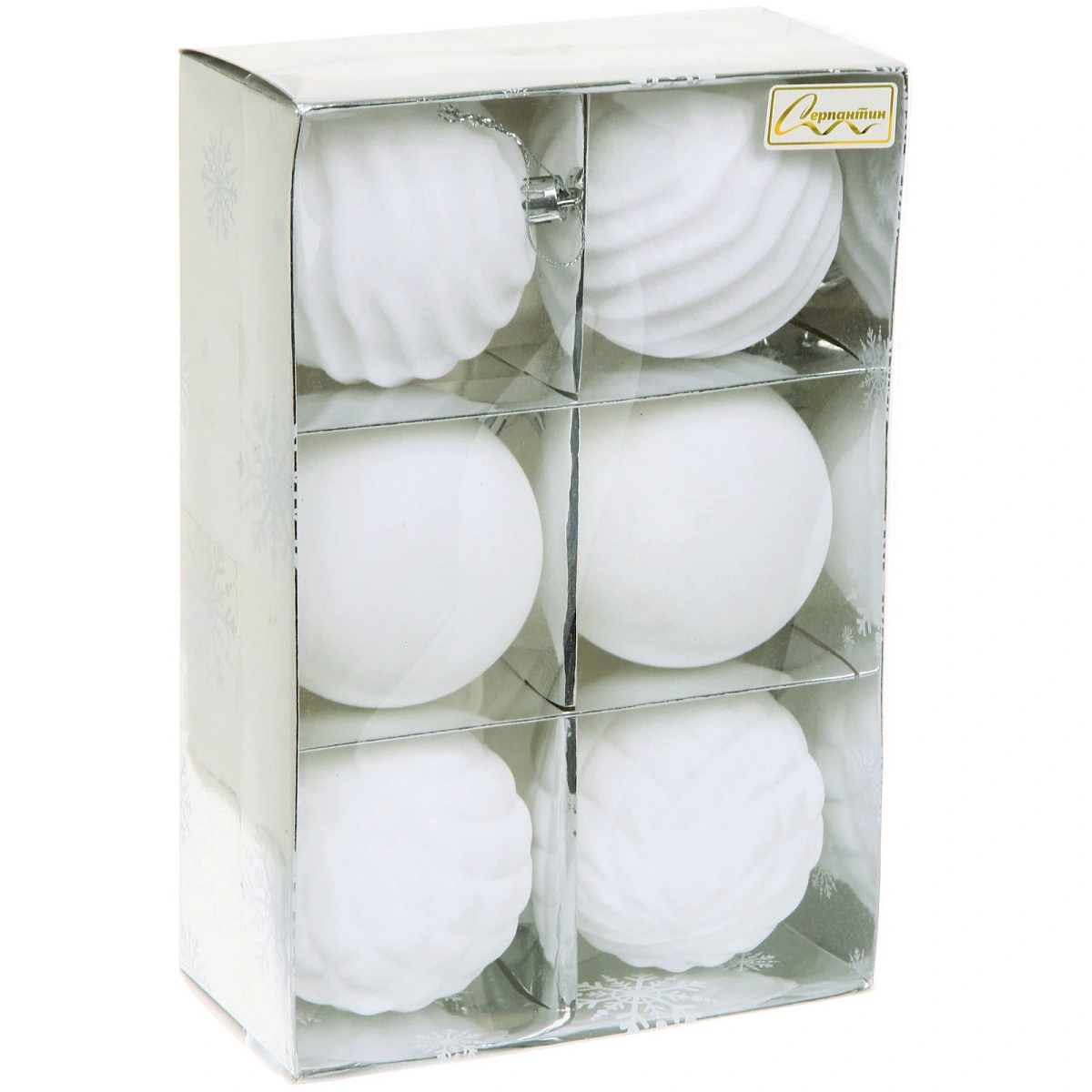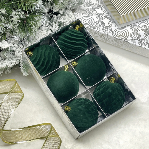Набор шаров VELOUR "Стильная зима" 8 см (набор 6 шт), Белый