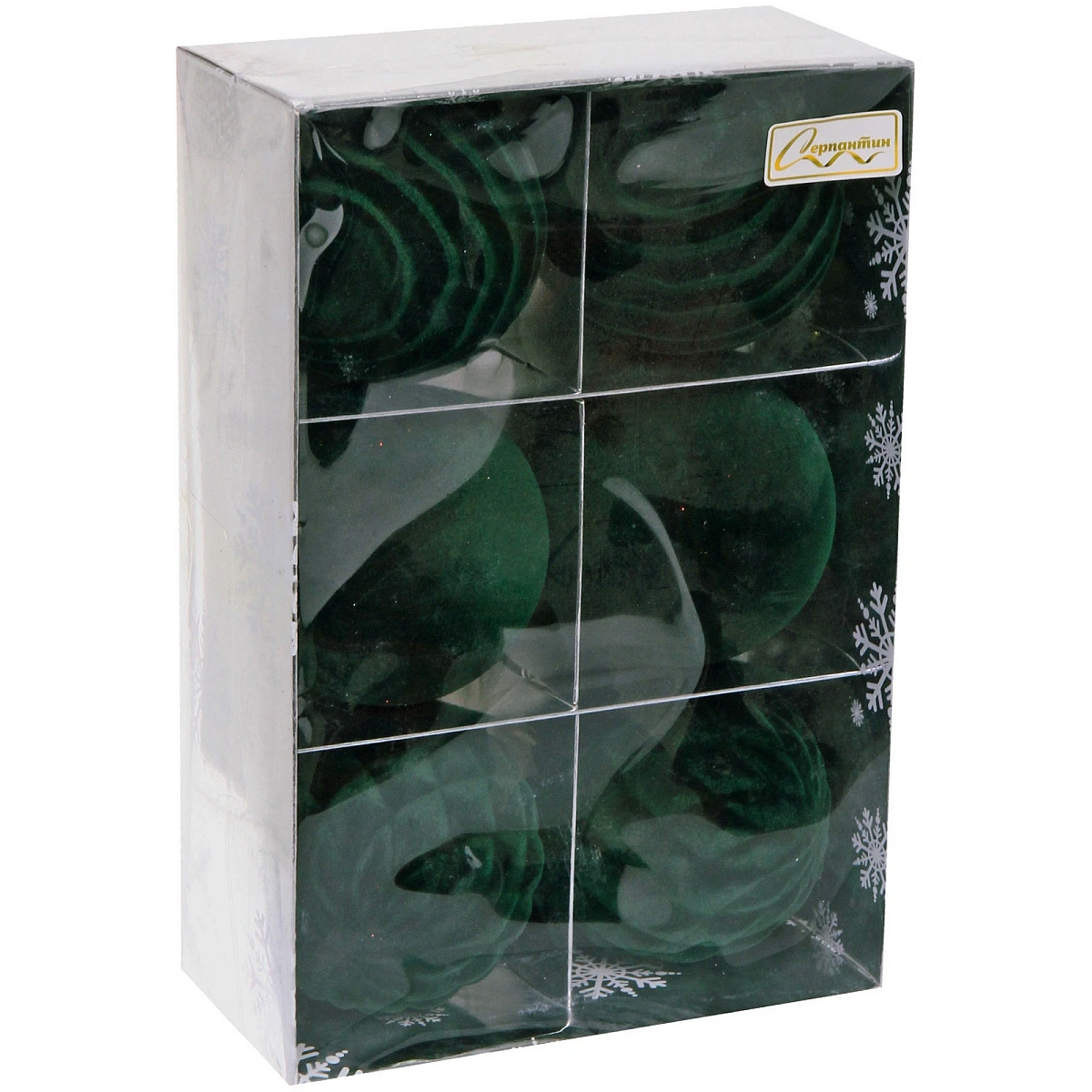 Набор шаров VELOUR "Стильная зима" 8 см (набор 6 шт), Изумруд