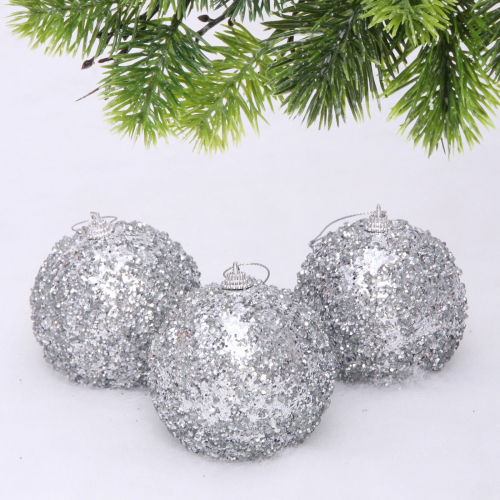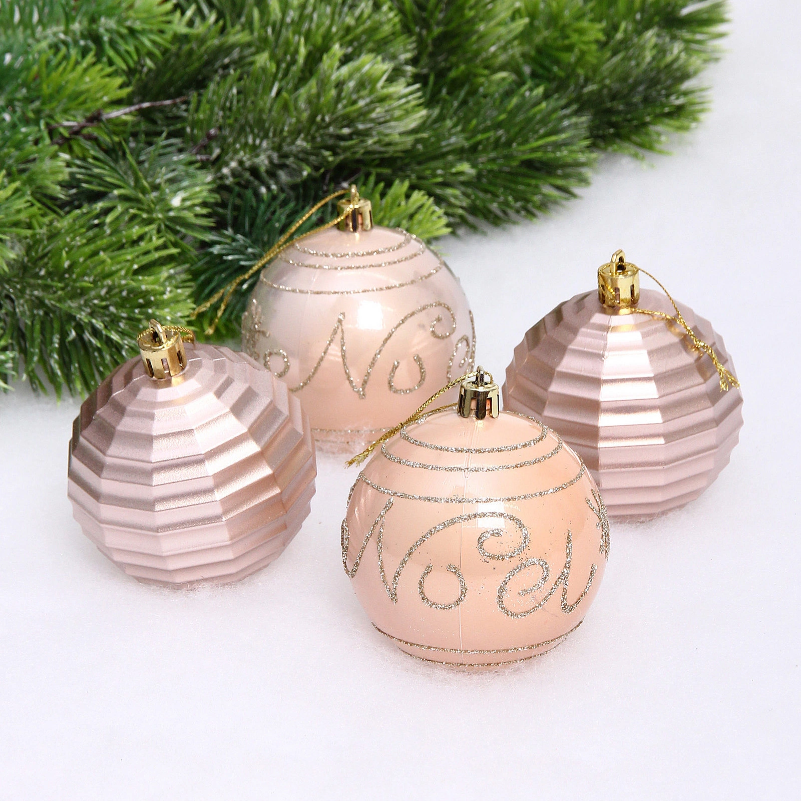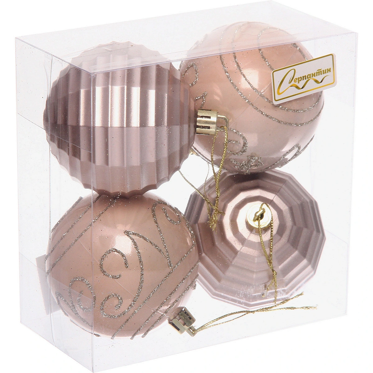 Набор шаров "Зимний коллаж" 7 см (в наборе 4 шт), Шампань