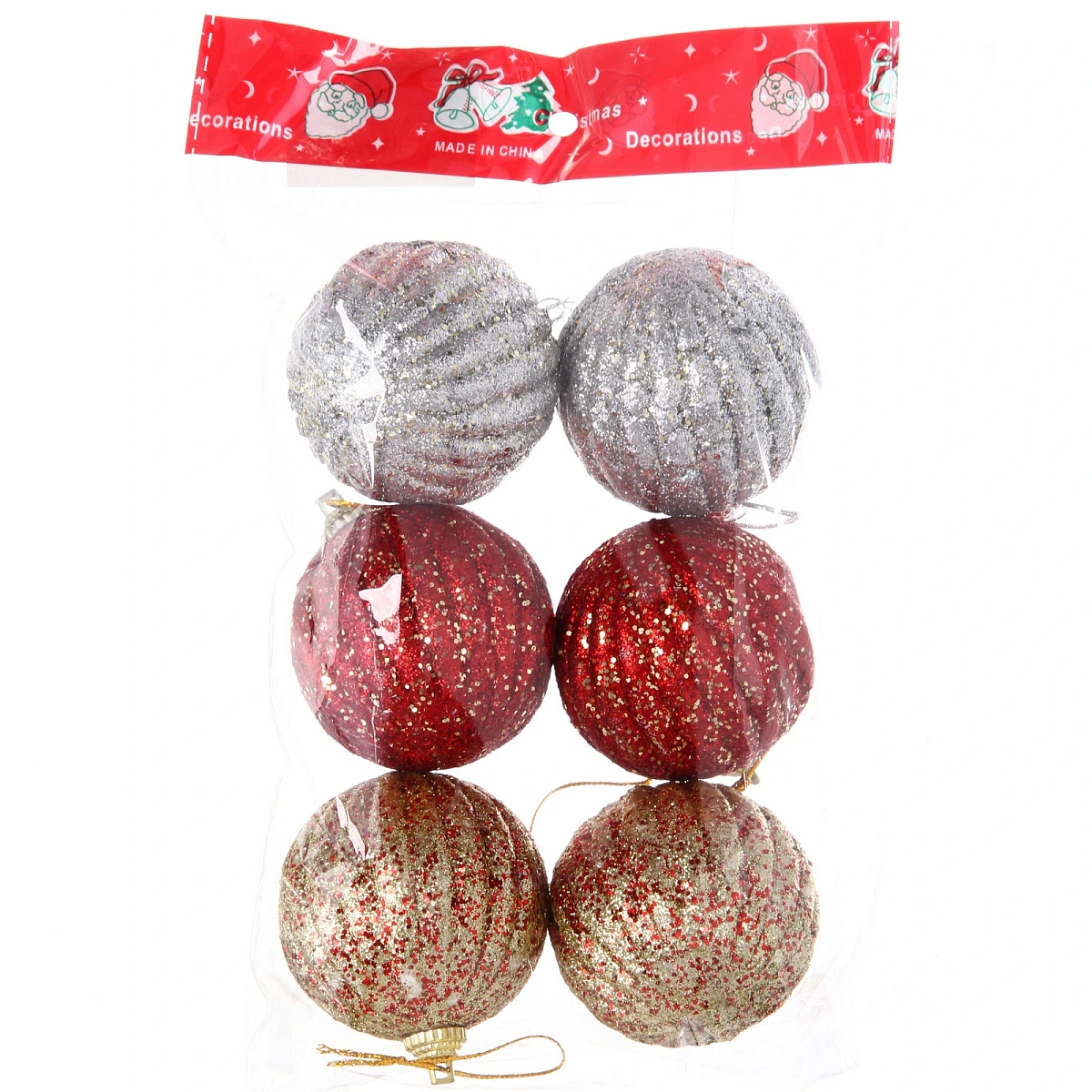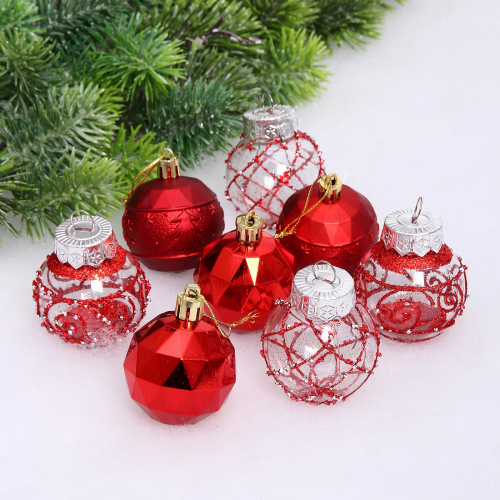 Набор украшений "Закружила вьюгой" 6 см (набор 6 шт), Красный,золото, серебро
