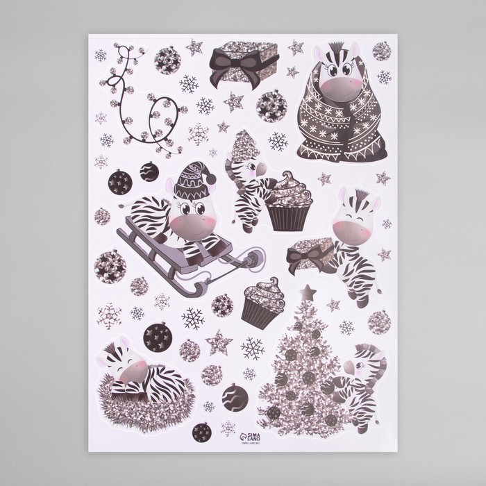 Наклейка интерьерная цветная «Зебра и серебристые снежинки», 30×40 см