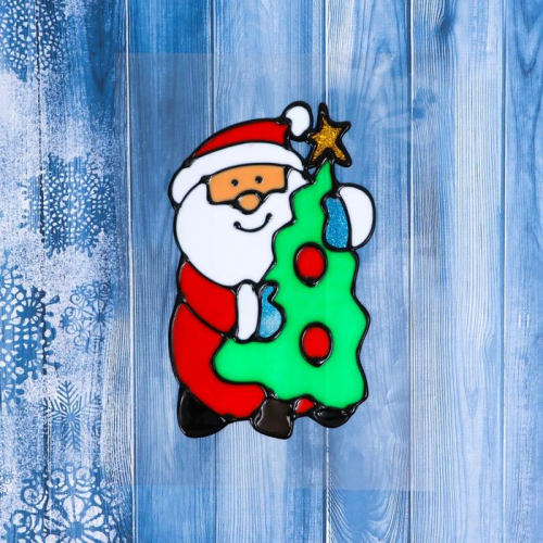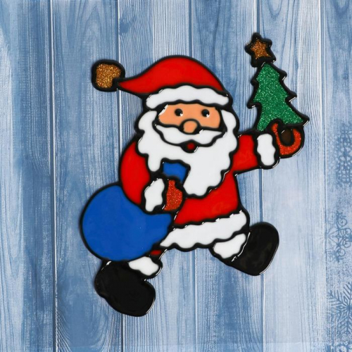 Наклейка на стекло «Дед Мороз с ёлкой и мешком»,11×14 см