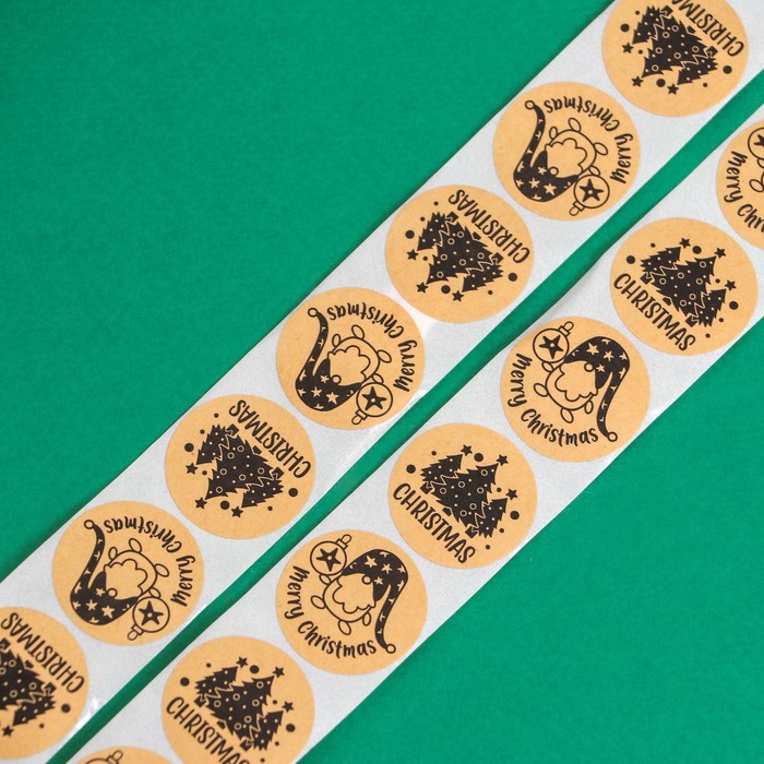 Наклейки новогодние в рулоне Christmas, для декора и подарков, 500 шт., 2.5×2.5 см