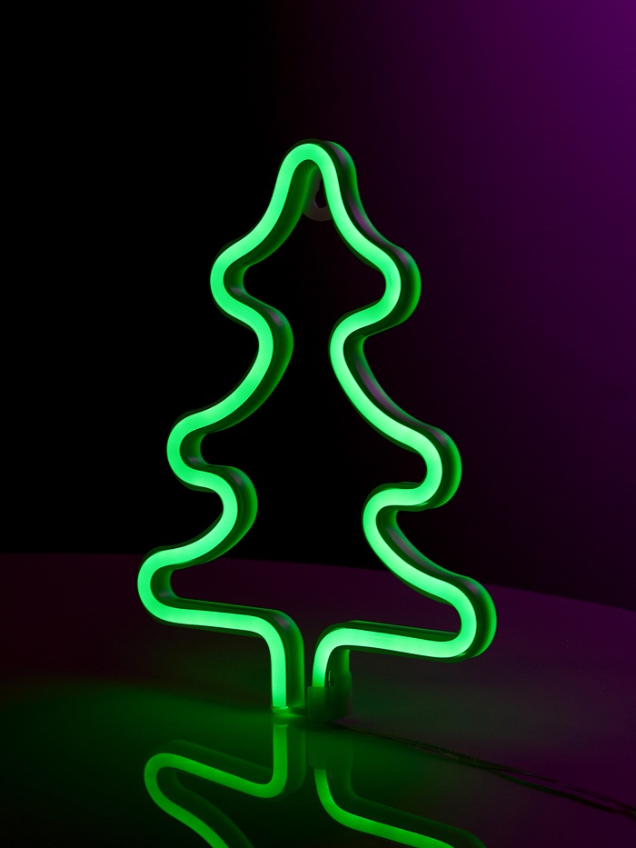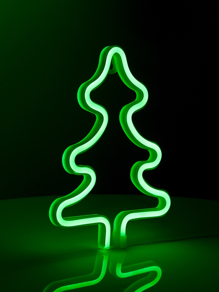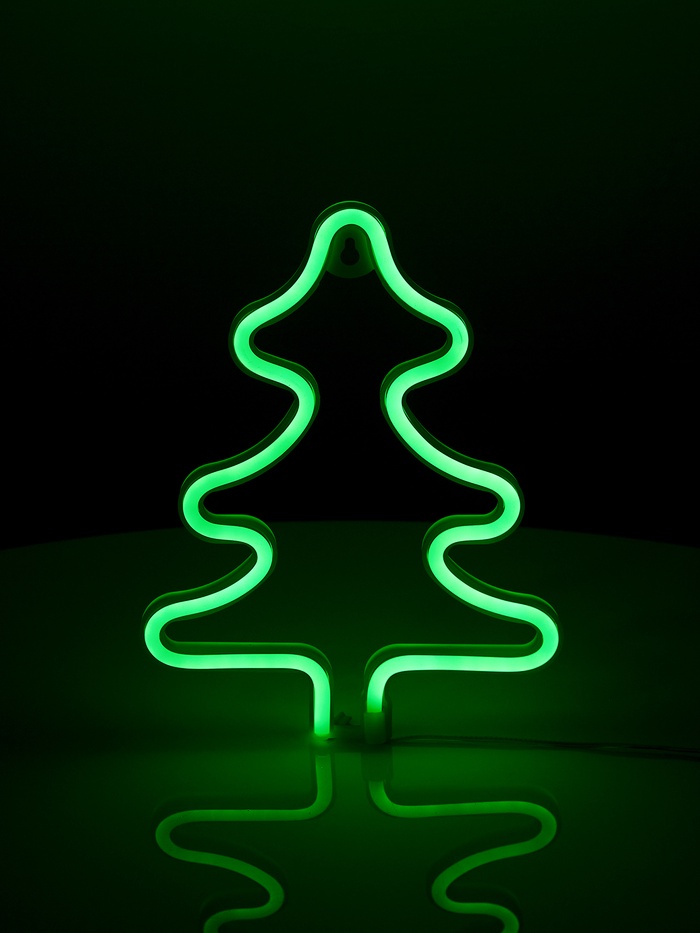 Неоновая вывеска «Ёлка» 20×25 см, батарейки ААх3 (не в комплекте), USB, свечение зелёное