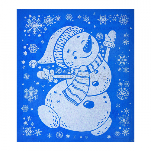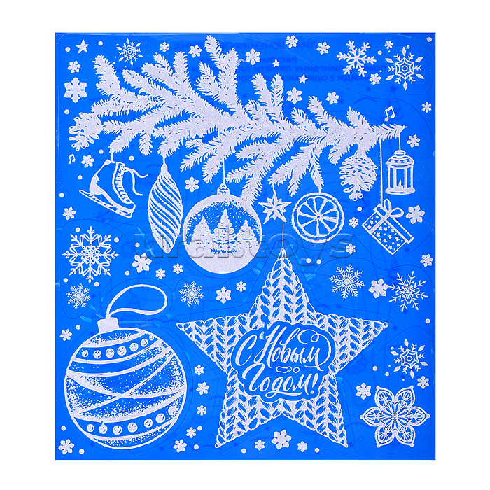 Новогоднее оконное украшение "Веточка с игрушками" из ПВХ пленки, декорировано глиттером (крепится к гладкой поверхности стекла посредством статического эффекта) с раскраской на картонной подложке 15,5x17,5см