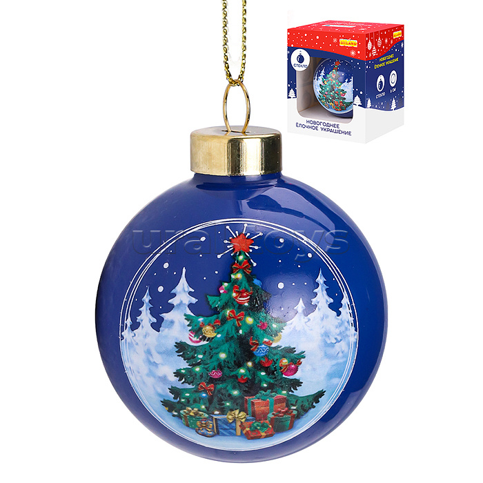 Новогоднее украшение. Елочный стеклянный шар "Яркая ёлочка", 6см (соб.разб.)