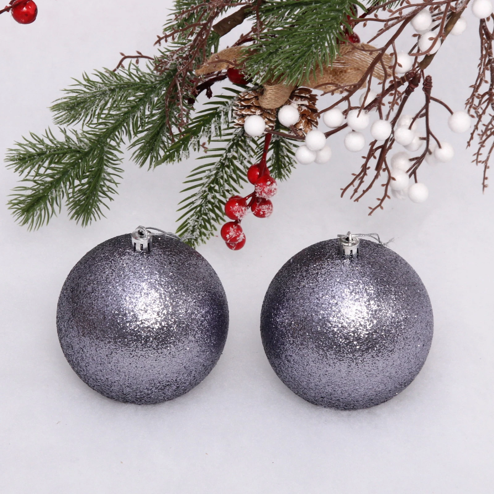 Новогодние шары 10 см (набор 2 шт) "Глиттер", графит