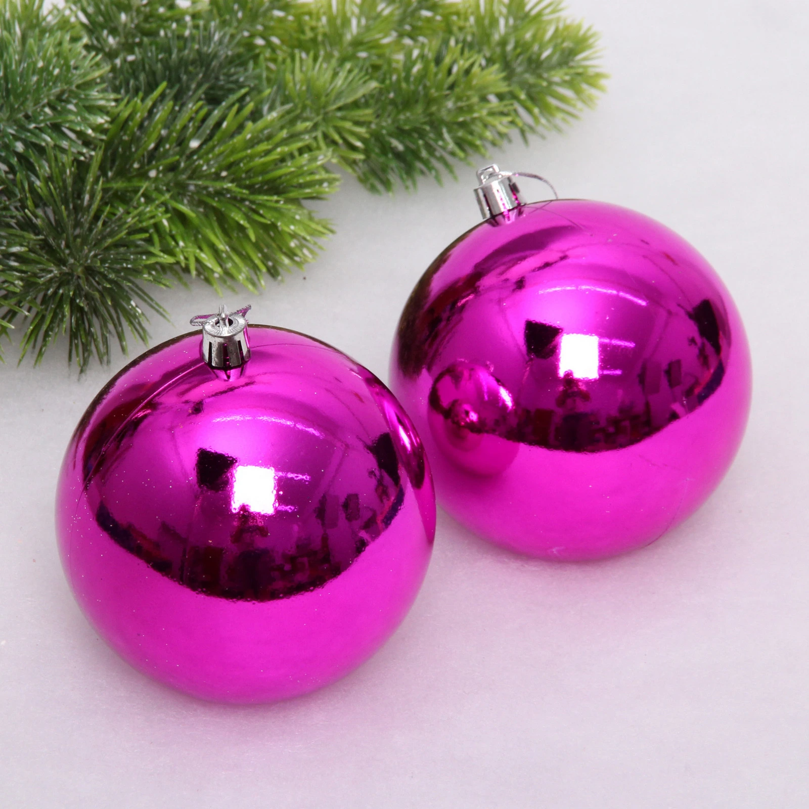 Новогодние шары 10 см (набор 2 шт) "Глянец", фуксия
