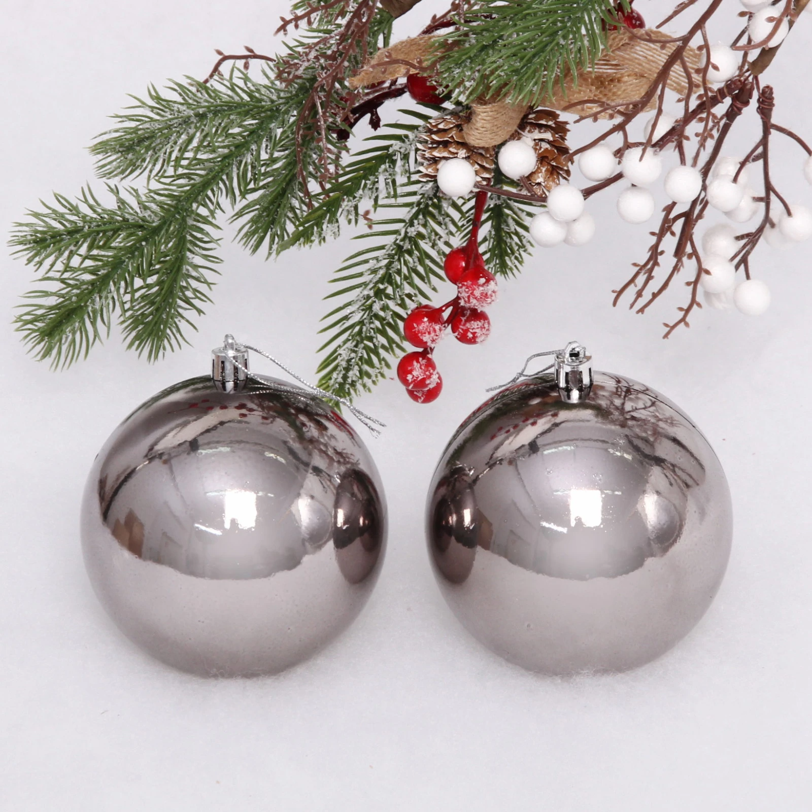Новогодние шары 10 см (набор 2 шт) "Глянец", графит