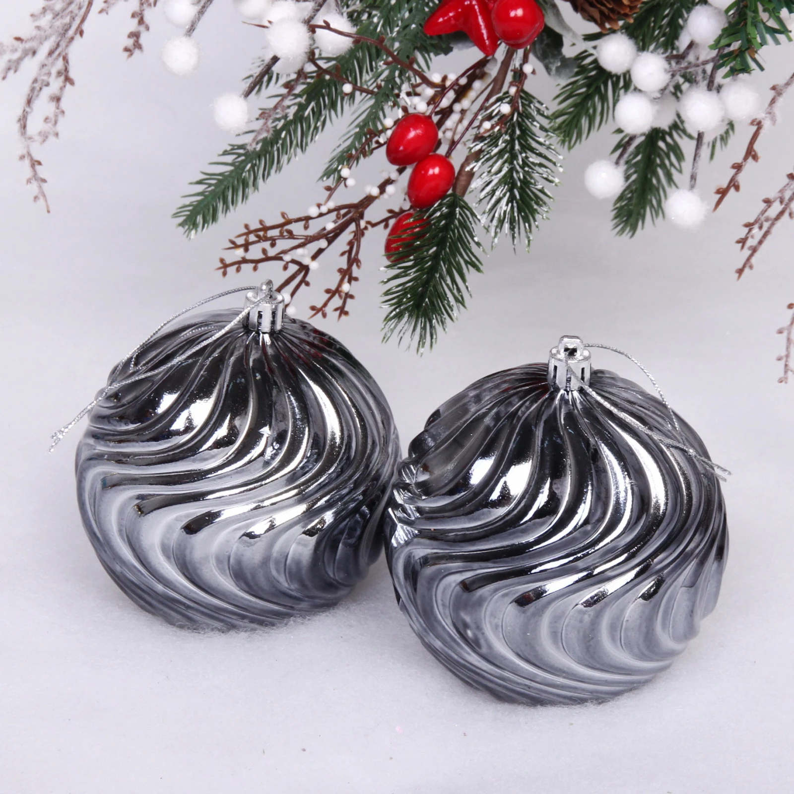 Новогодние шары 10 см (набор 2 шт) "Рельеф", графит