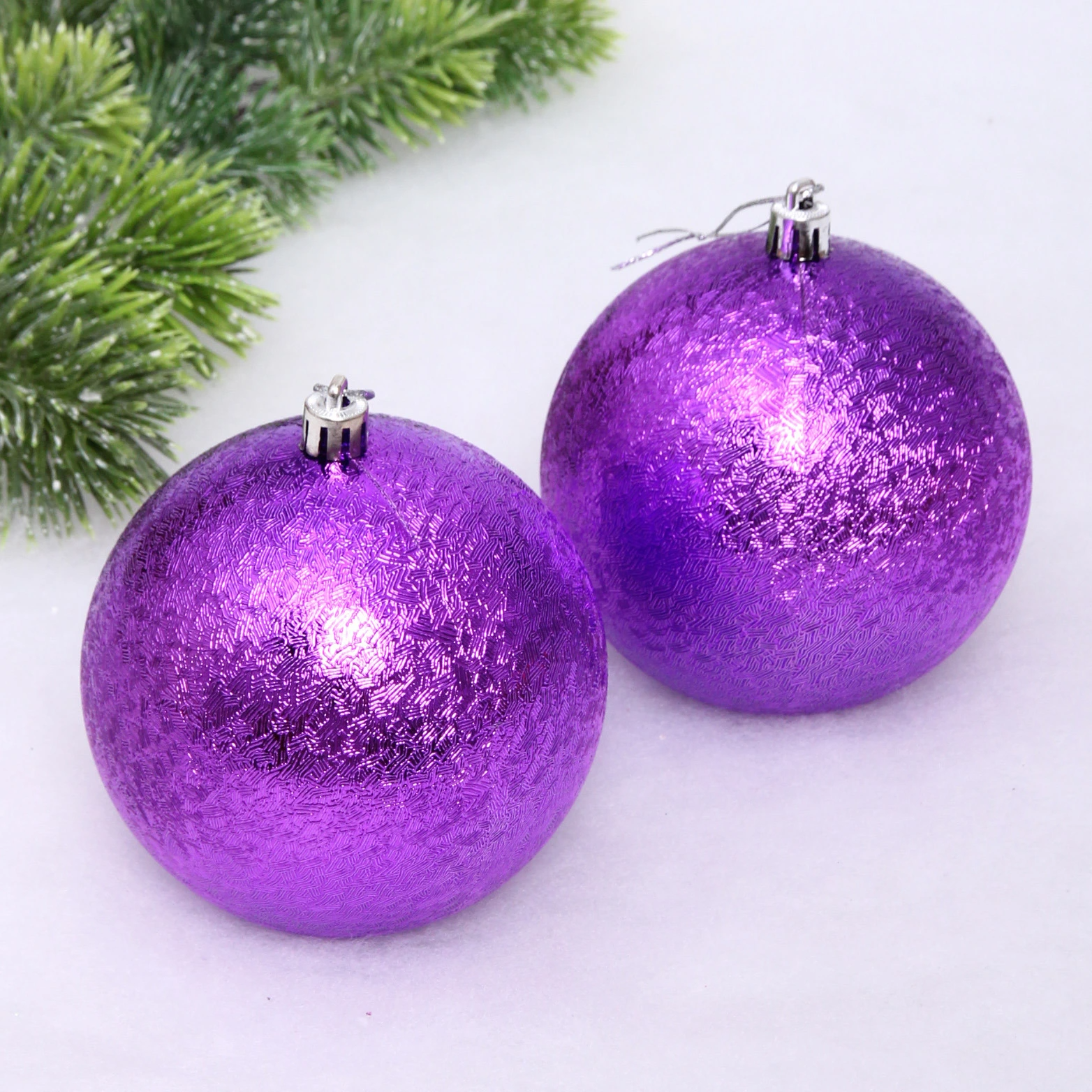 Новогодние шары 10см (набор 2шт) "Мягкий блеск", фиолетовый