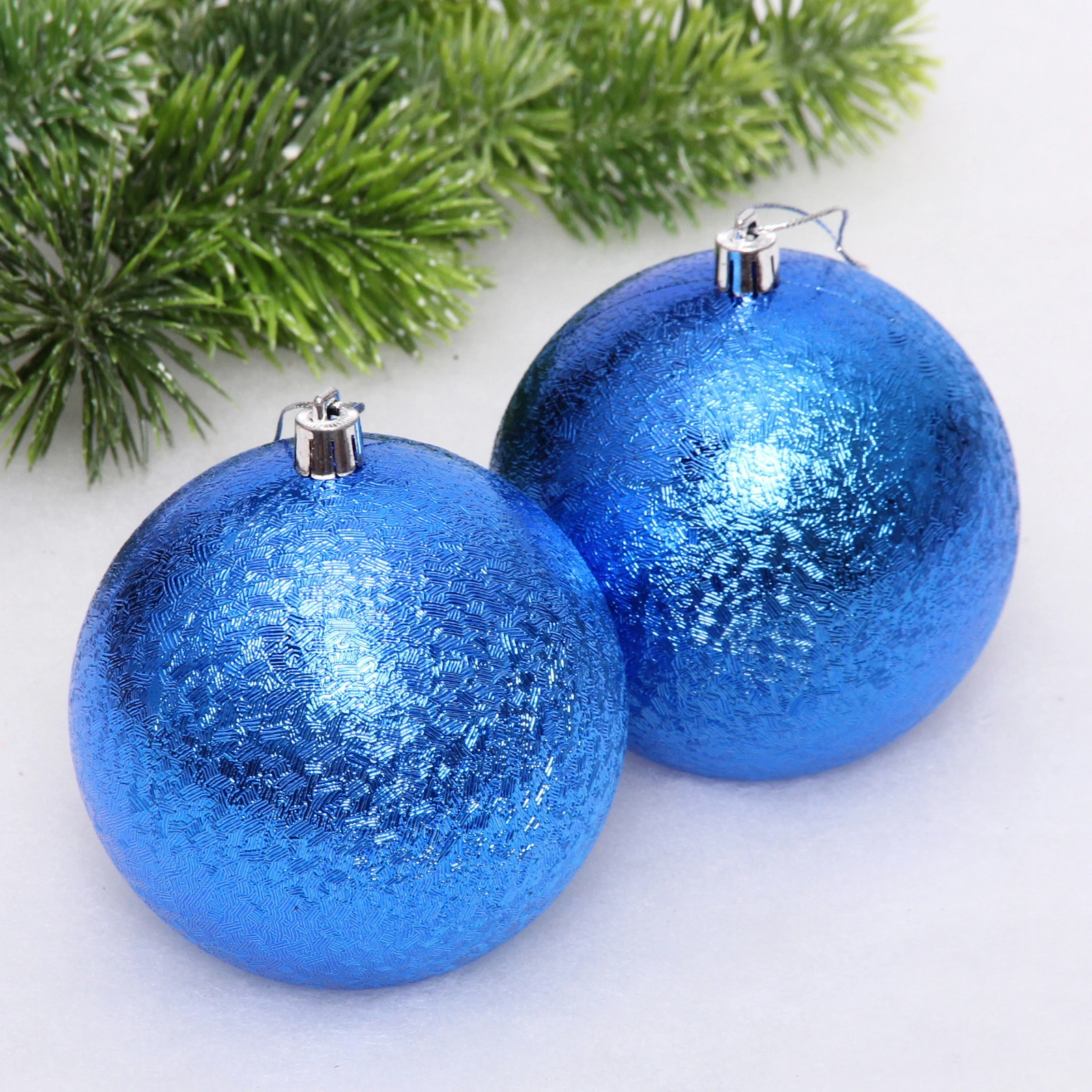 Новогодние шары 10см (набор 2шт) "Мягкий блеск", синий