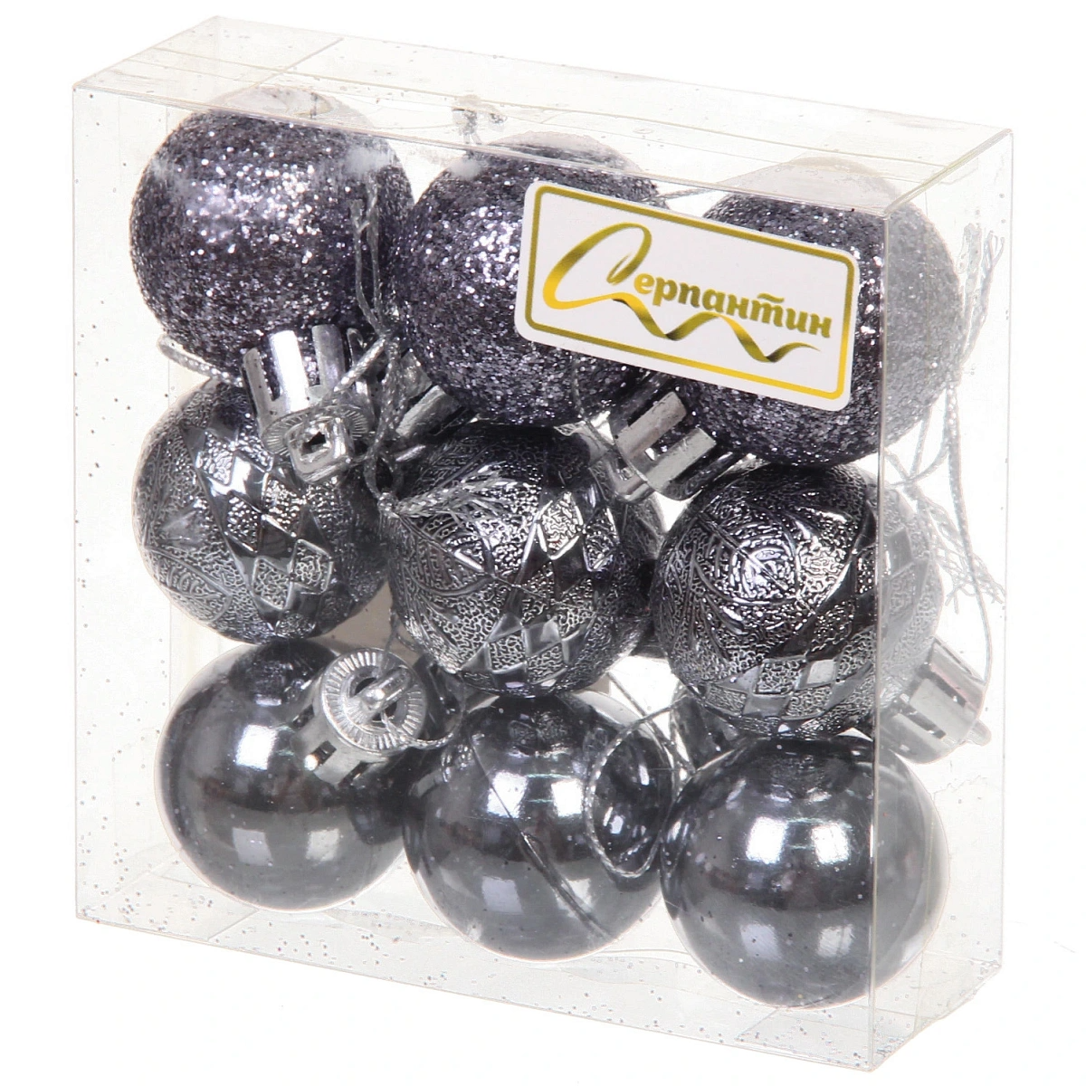 Новогодние шары 3 см (набор 9 шт) «Микс фактур», графит