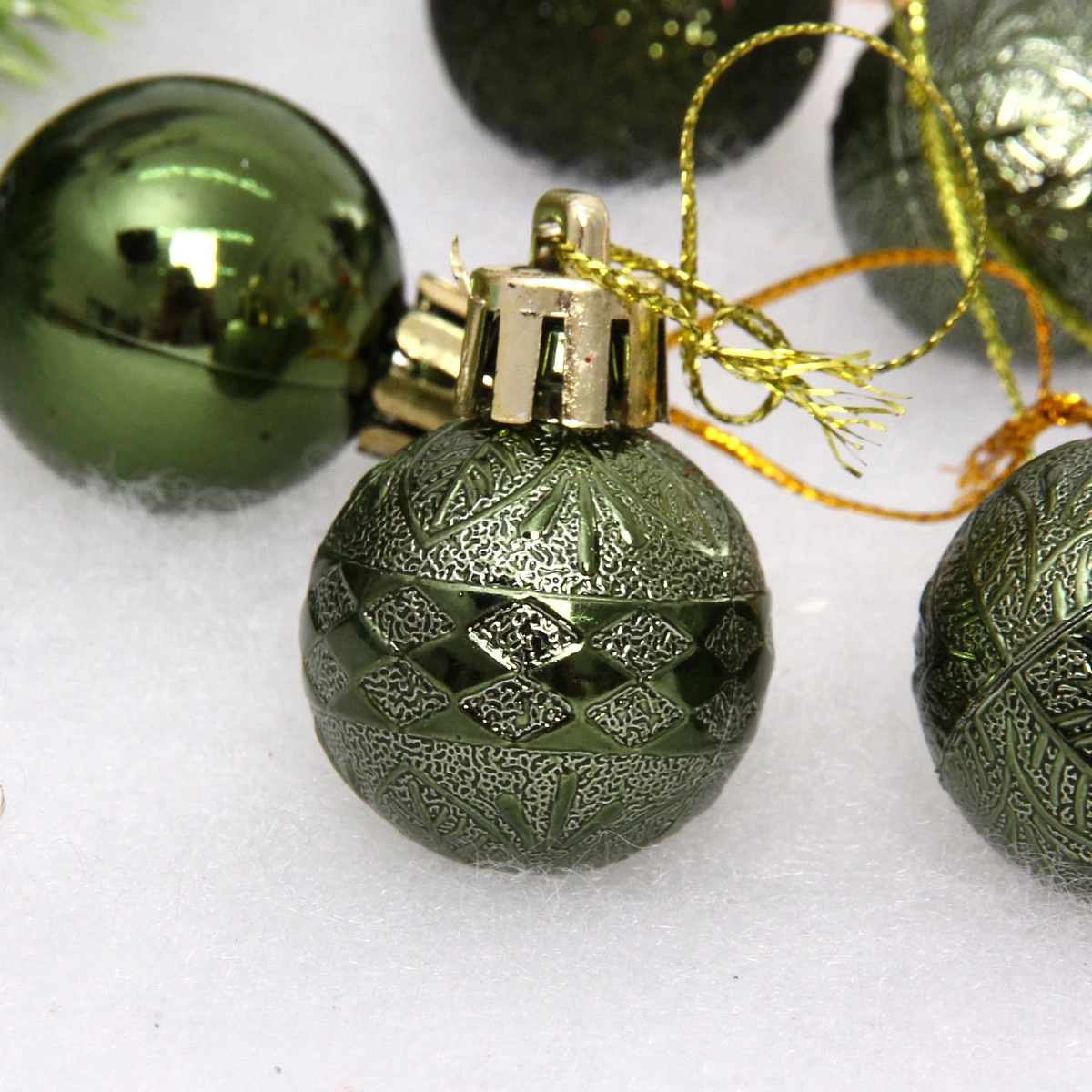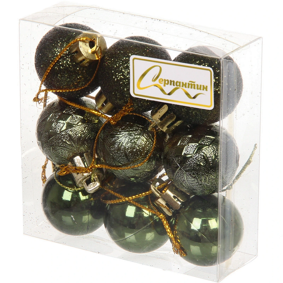 Новогодние шары 3 см (набор 9 шт) «Микс фактур», изумруд