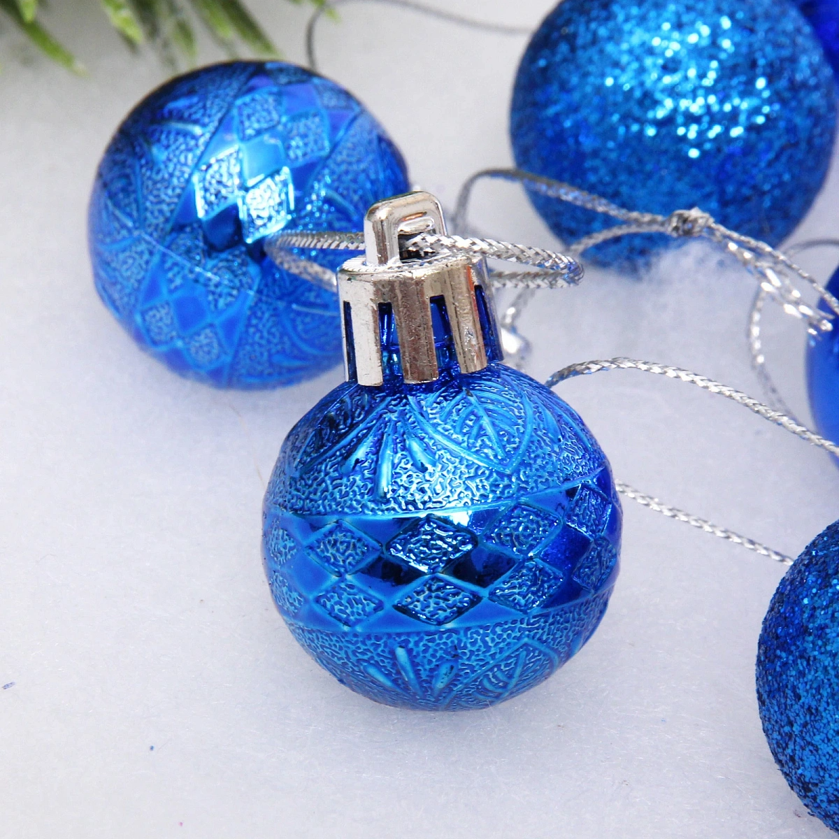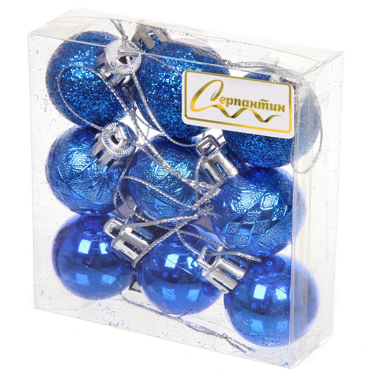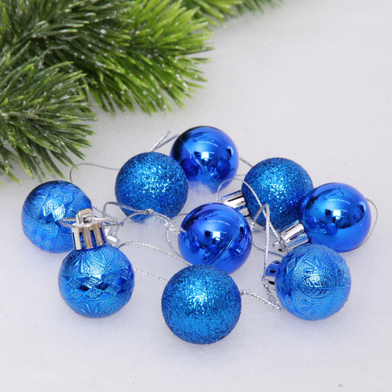 Новогодние шары 3 см (набор 9 шт) «Микс фактур», синий