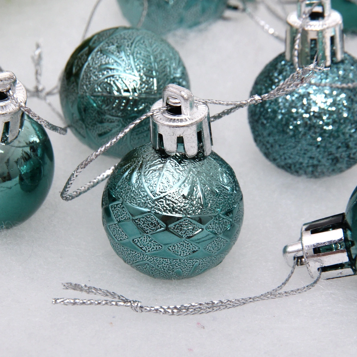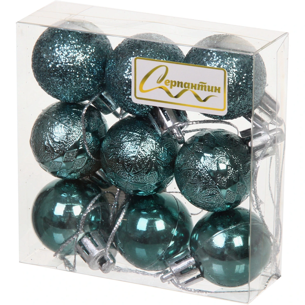 Новогодние шары 3 см (набор 9 шт) «Микс фактур», темный нефрит