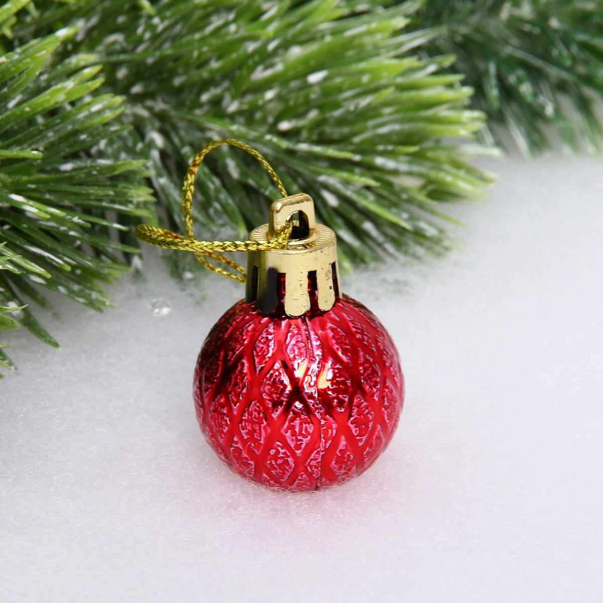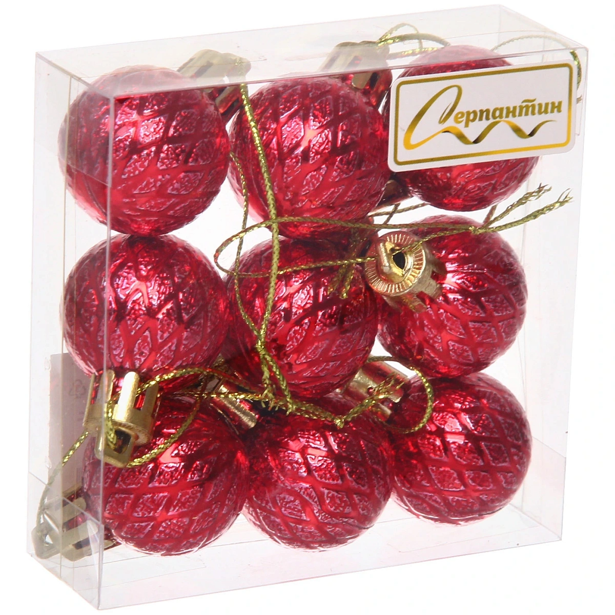 Новогодние шары 3 см (набор 9 шт) "Рельефный узор", красный