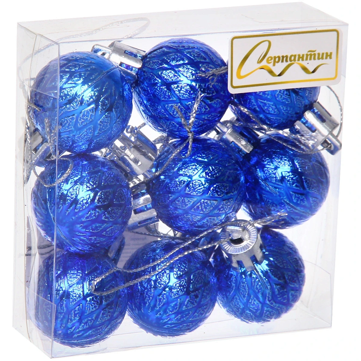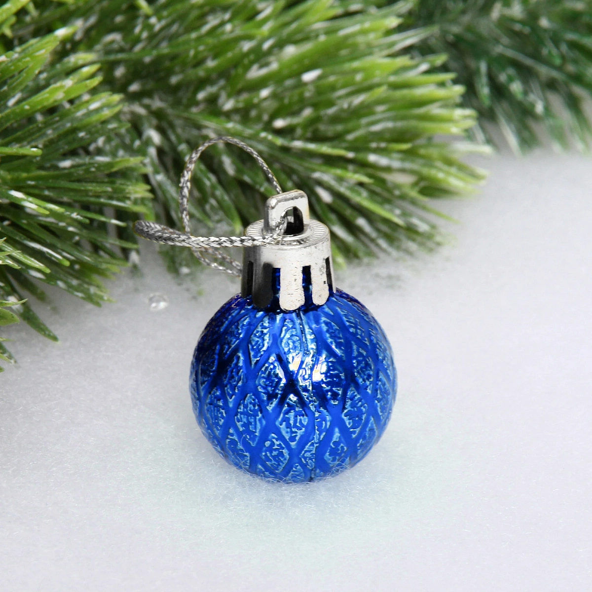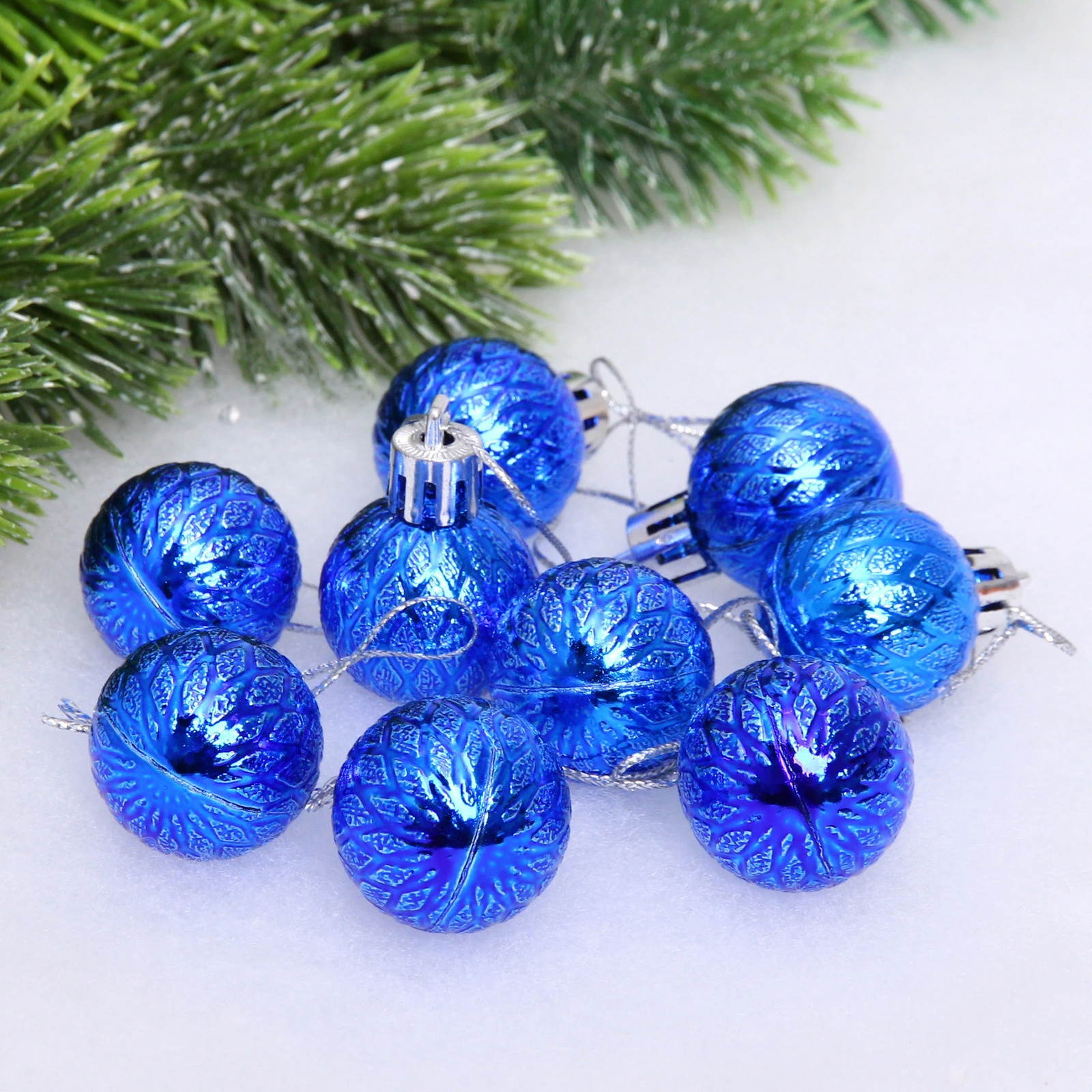 Новогодние шары 3 см (набор 9 шт) "Рельефный узор", синий