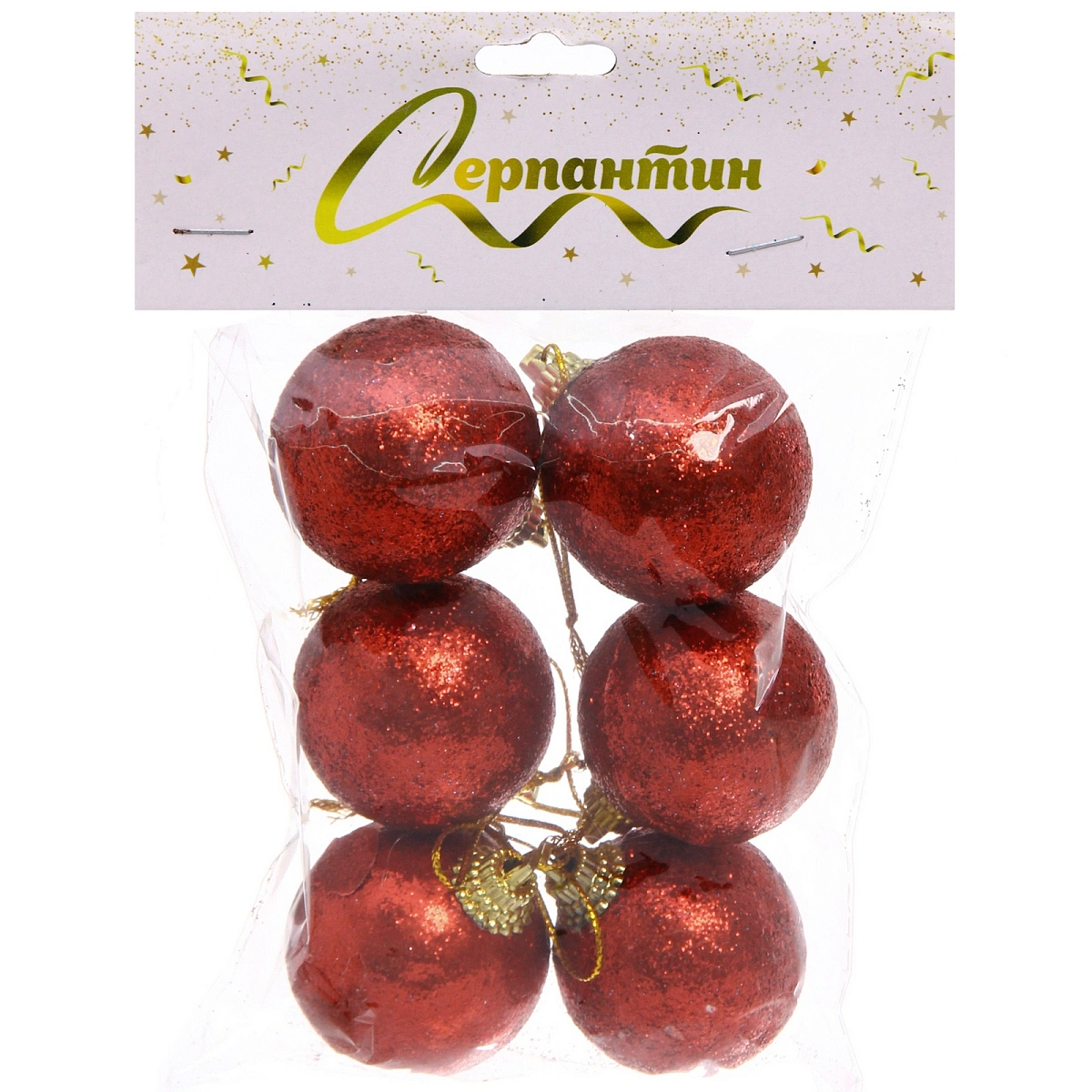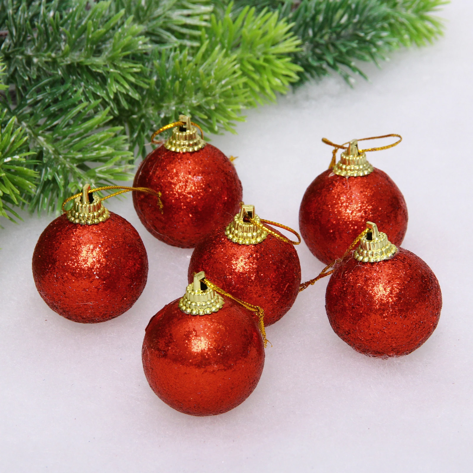 Новогодние шары 4 см (набор 6 шт) "Блестящее напыление", красный